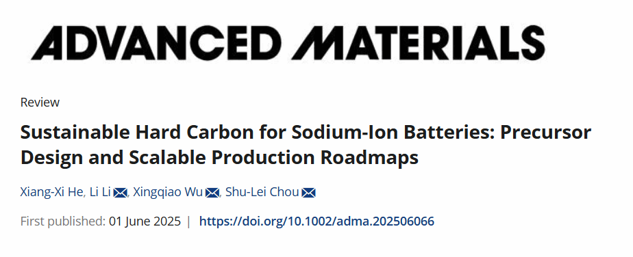此项工作以“Sustainable Hard Carbon for Sodium-Ion Batteries: Precursor Design and Scalable Production Roadmaps”为题发表在国际顶级期刊Advanced Materials上,beat365正版唯一官网必一作为第一单位,侴术雷教授,吴星樵老师,李丽教授为通讯作者,beat365正版唯一官网必一碳中和技术创新研究院何祥喜博士为第一作者。研究工作得到了国家自然科学基金,浙江省自然科学基金中国研发计划项目,温州自然科学基金等资助。