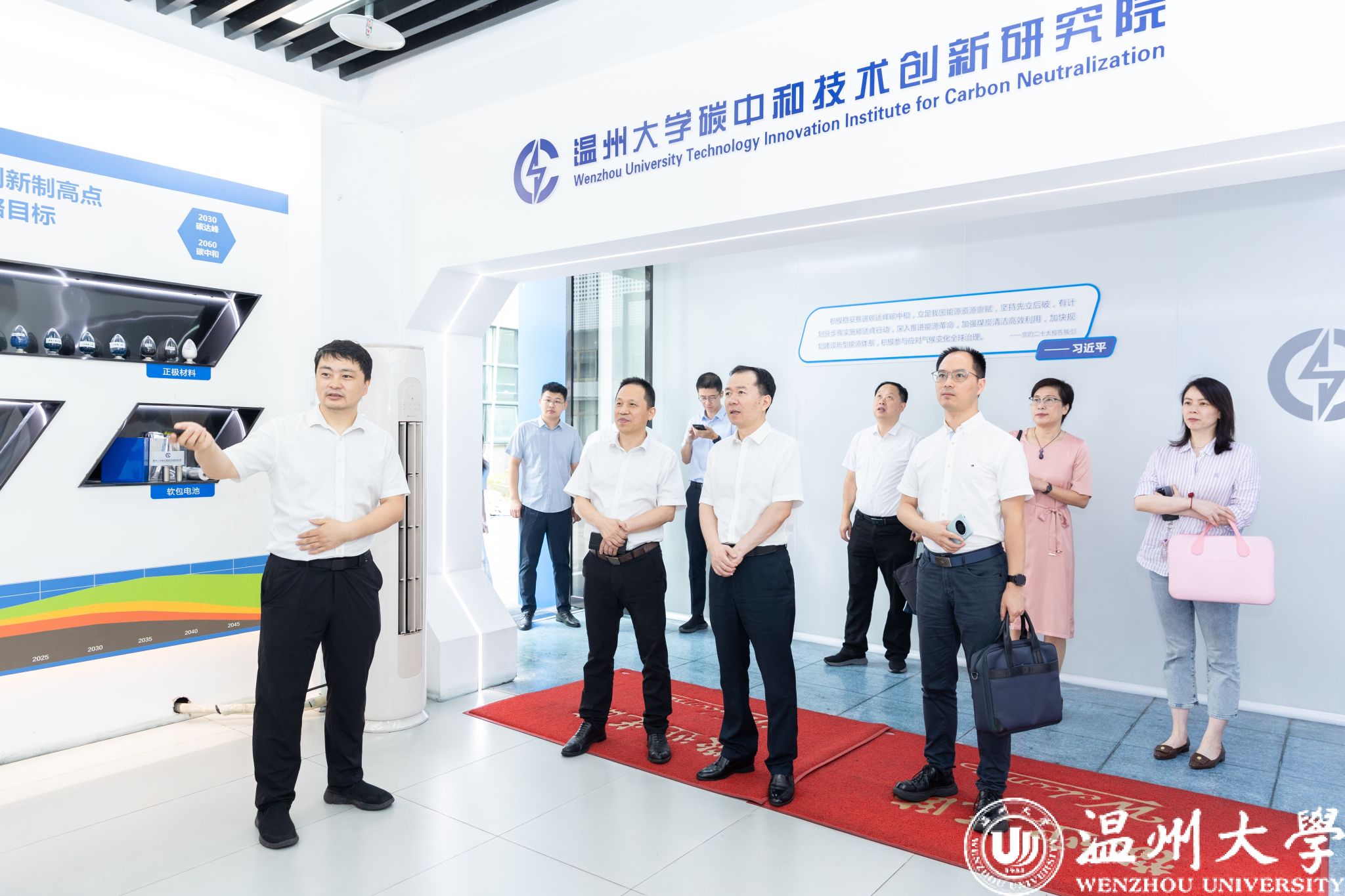 陈仁坚一行实地考察了beat365体育与健康学院、碳中和技术创新研究院与碳材料技术研究重点实验室,深入了解温州足球学院与足球运动专业建设、钠离子电池开发、清洁能源技术创新与成果转化等情况。