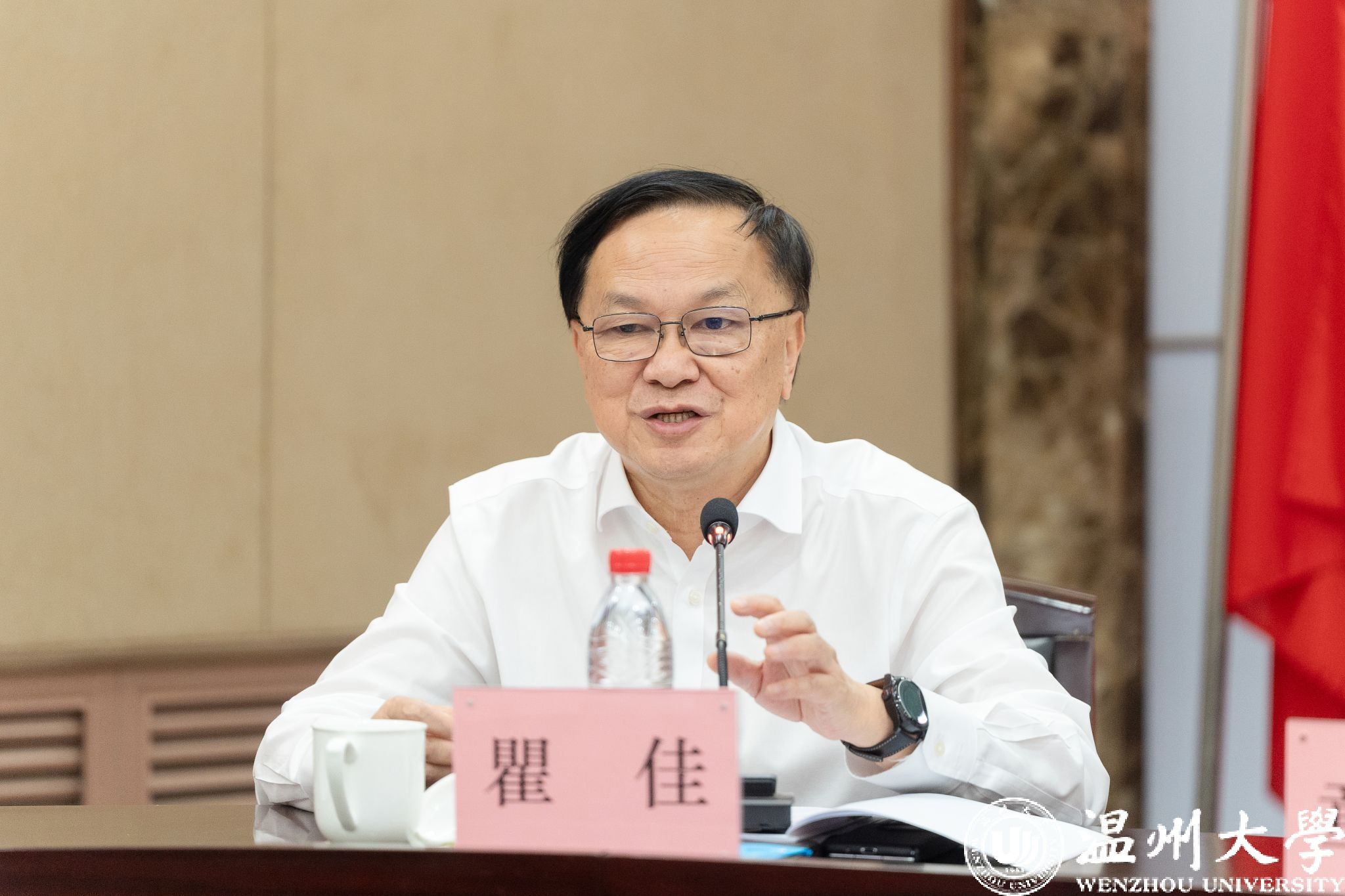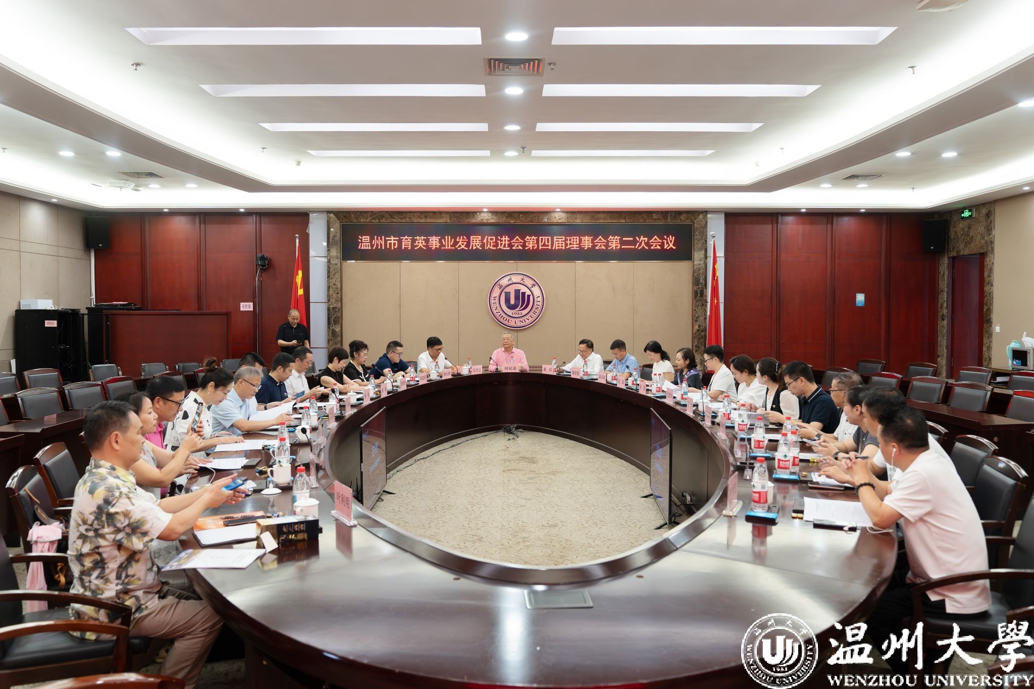 7月22日上午,温州市育英事业发展促进会第四届理事会第二次会议在beat365南校区岩松堂白鹿厅召开。理事会顾问、著名慈善家、温籍台胞何纪豪先生,理事会会长瞿佳,业务指导单位温州市委台办联络处处长童景景以及各理事单位代表、何纪豪先生亲友代表出席。会议由beat365正版唯一官网必一党委副书记庄兴忠主持。