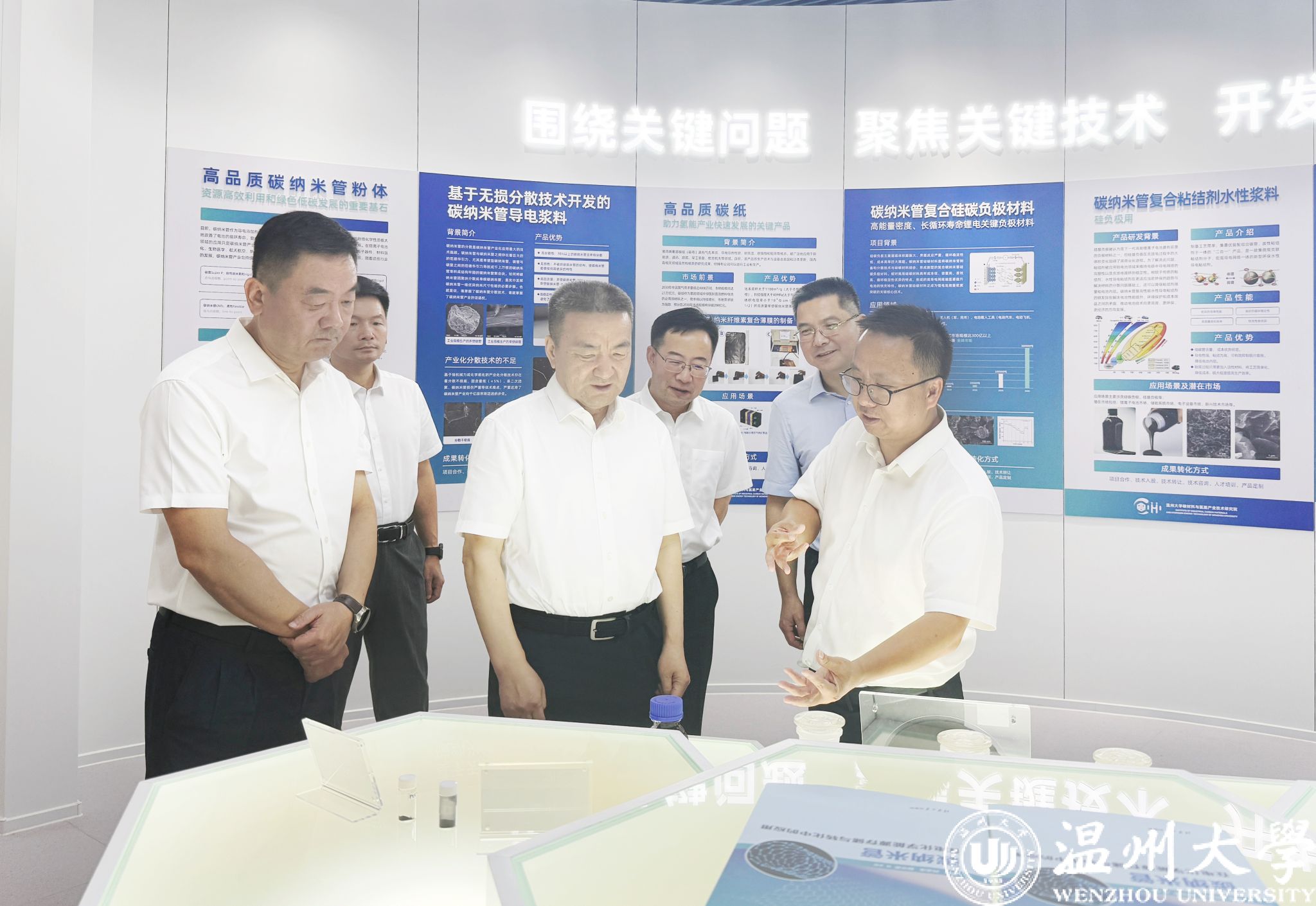 7月24日,浙江省委常委、政法委书记王成国在温州洞头、乐清、瑞安等地宣讲省委十五届七次全会精神,并来beat365碳材料与氢能产业技术研究院(以下简称“碳氢院”)调研指导工作。浙江省委政法委副书记叶新,温州市副市长、市委政法委副书记毛伟平,beat365正版唯一官网必一党委书记钱强,瑞安市委书记李坚,温州市委政法委常务副书记连正坚陪同调研。