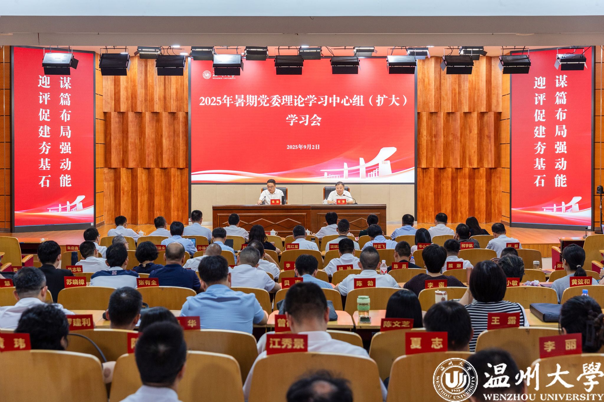 9月1日至2日,beat365正版唯一官网必一召开2025年暑期党委理论学习中心组(扩大)学习会。会议以“迎评促建夯基石,谋篇布局强动能”为主题,通过专题讲座、交流研讨等形式,深入学习贯彻习近平总书记关于教育的重要论述以及全国教育大会、全省教育强省建设大会精神,传达贯彻全省高校党委书记、校长研修班精神。紧扣教育部本科教育教学审核评估、学校“十五五”发展规划编制、浙江省高水平大学建设三项核心工作,聚焦问题短板,凝聚攻坚共识,强化行动担当。