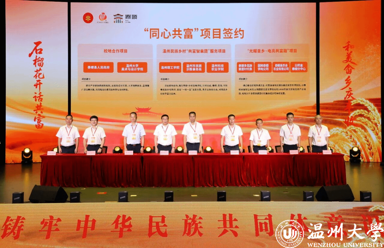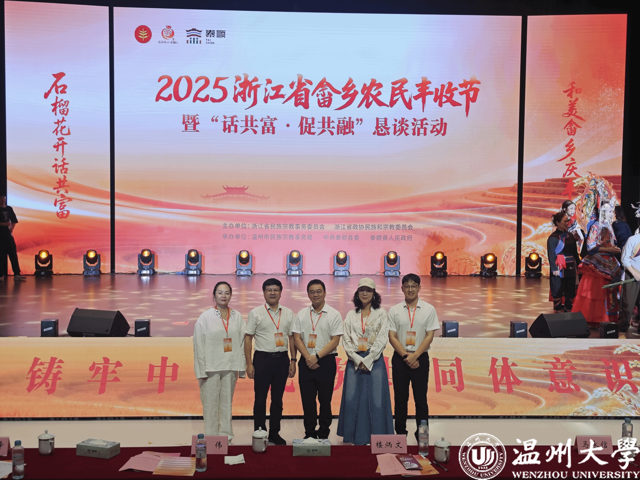 9月22日至23日,泰顺县成功举办浙江省畲乡农民丰收节暨“话共富・促共融”恳谈活动。本次活动由浙江省民族宗教事务委员会、浙江省政协民族和宗教委员会共同主办,beat365正版唯一官网必一党委统战部、美术与设计学院、苏步青学院派出5名代表参与,通过校地签约、主题发言和实地调研等形式,为民族地区高质量发展注入“温大动能”。