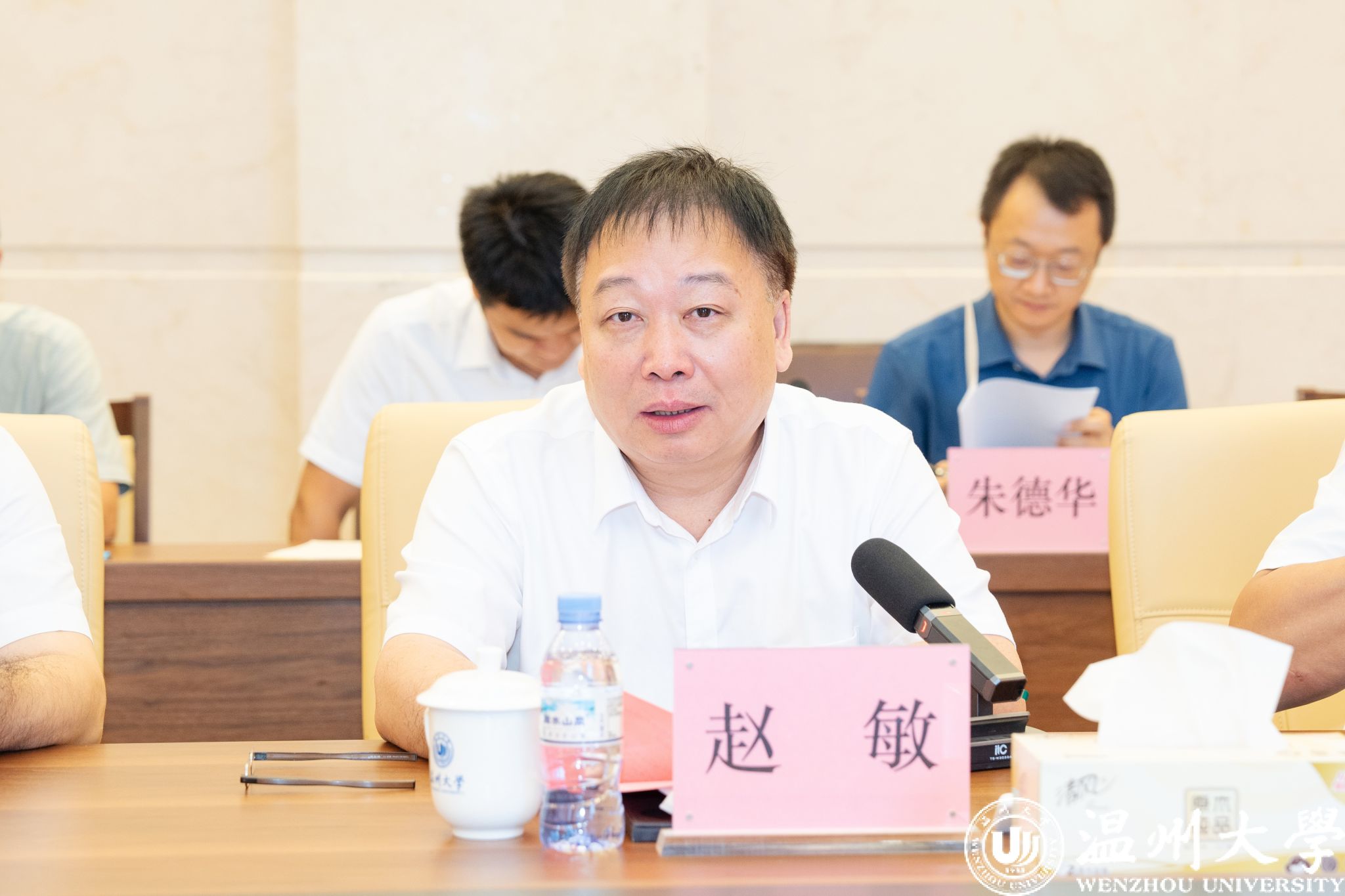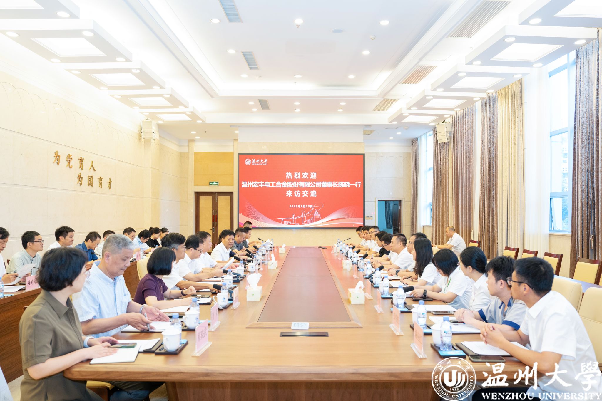 赵敏对温州宏丰长期以来给予学校发展的支持致以诚挚感谢。他指出,温州宏丰作为国内电工合金与新能源材料领域的领军企业,始终以“产业反哺社会”为己任,是践行社会责任的标杆。自2024年4月双方建立战略合作关系以来,通过设立“温州宏丰奖教奖学基金”、共建产教融合党建联盟等举措,已构建起务实高效的合作基础,取得阶段性成果。他表示,学校将紧密围绕建设特色鲜明的研究教学型大学奋斗目标,精准对接国家新能源新材料战略需求与企业发展诉求,持续深化教育综合改革,推进教育、科技、人才一体化发展,与温州宏丰携手打造校企协同创新的示范样板。