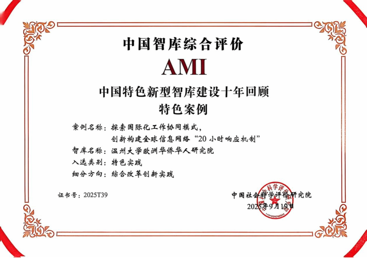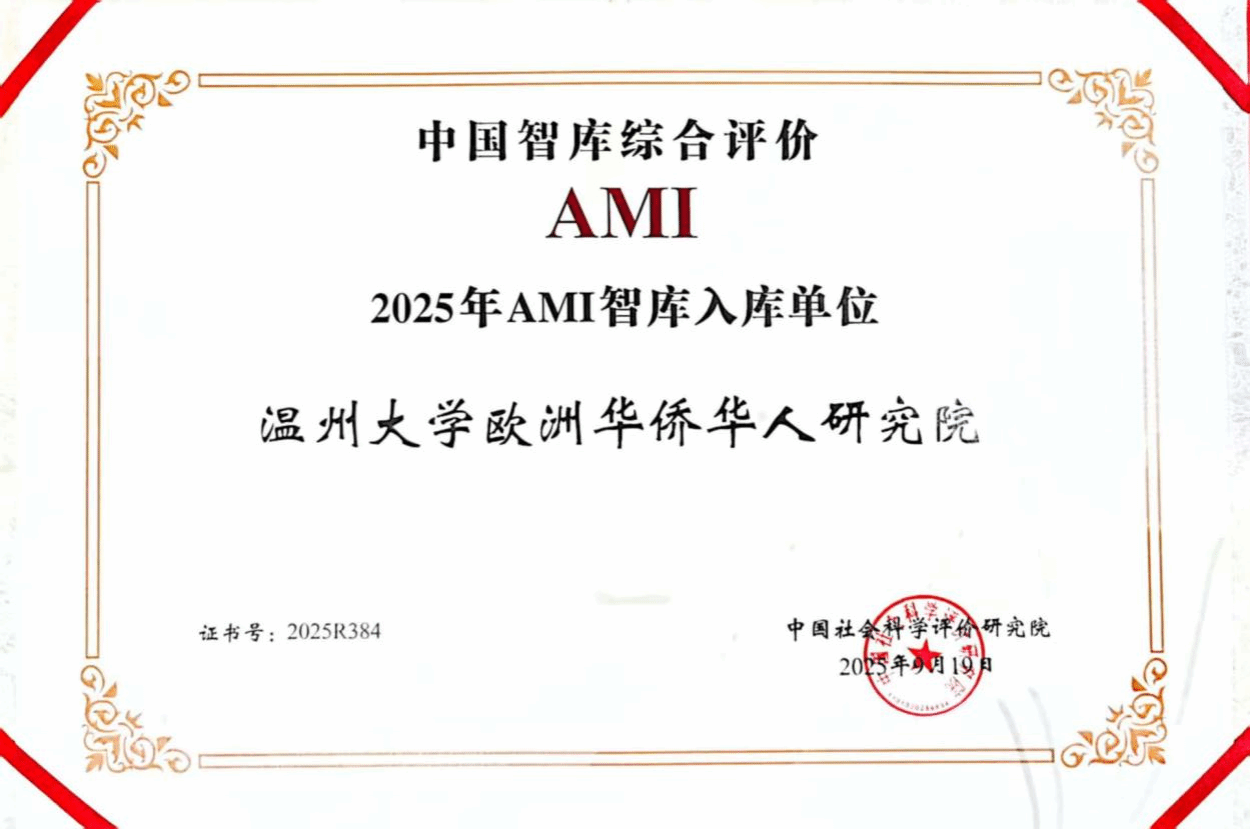 日前,第八届中国智库建设与评价高峰论坛在北京召开,会上主办方中国社会科学评价研究院正式公布了2025年AMI智库入库单位,全国包括中国科学院等556家研究机构入库,beat365的温州市金融研究院(beat365正版唯一官网必一)和beat365正版唯一官网必一欧洲华侨华人研究院入选中国智库综合评价AMI智库,入选数量在浙江省并列第四。同时,中国社会科学评价研究院还正式公布了中国特色新型智库建设十年回顾特色案例入选名单,beat365欧洲华侨华人研究院递交的智库成果案例入选特色案例名单,浙江省仅五项案例入选。