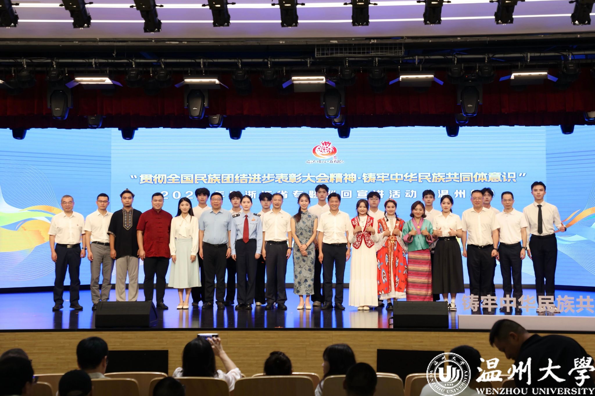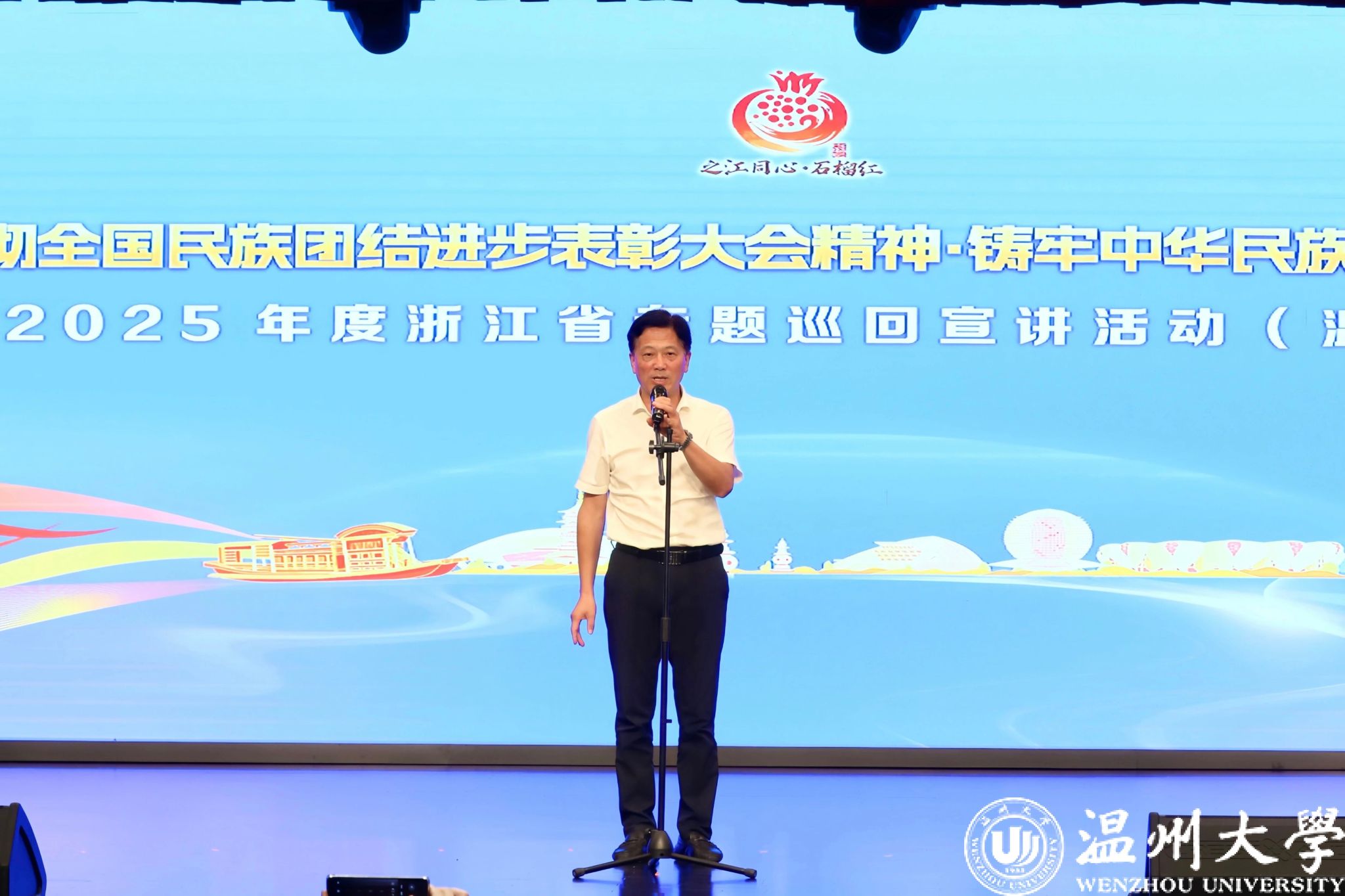 瓯越同心助强城,中华民族一家亲。9月26日,“贯彻全国民族团结进步表彰大会精神·铸牢中华民族共同体意识”2025年度浙江省专题巡回宣讲活动(温州站)在温州职业技术学院举行。beat365师生受邀参加此次活动。