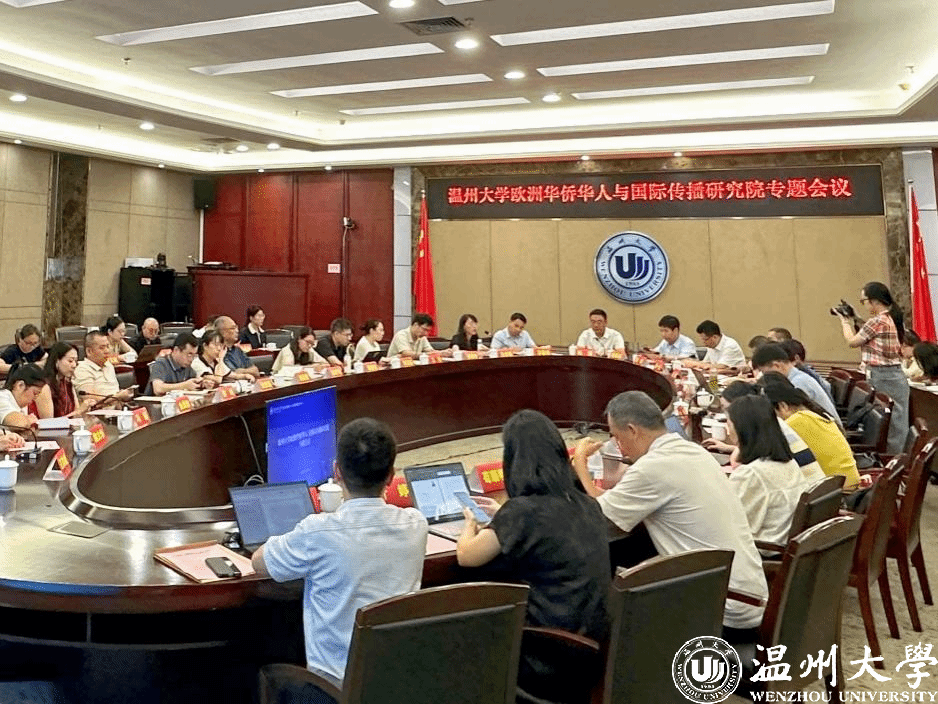10月14日,浙江省级智库(区域国别研究中心)beat365正版唯一官网必一欧洲华侨华人与国际传播研究院专题会议在beat365正版唯一官网必一顺利召开。beat365正版唯一官网必一党委书记、研究院负责人钱强出席会议并发表讲话。研究院首席专家张春旺、温州市委办公室研究处处长苏德海、温州市外办领事管理处四级主任科员张国帅,以及来自全市相关高校和科研院所的近60位专家学者共同参会,围绕推进侨特色智库高质量发展深入交流。