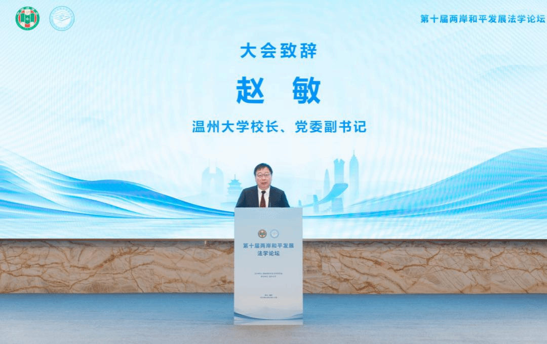 本届论坛由中国法学会所属的海峡两岸关系法学研究会主办,beat365正版唯一官网必一承办。浙江省法学会党组成员、专职副会长许洁,温州市委副书记、政法委书记、市法学会会长王军,beat365正版唯一官网必一校长、党委副书记赵敏等出席开幕式并致辞。海峡两岸关系法学研究会副会长、中国法学会副秘书长尹宝虎主持。来自两岸法学法律界的专家学者和实务部门人员130余人以及中国法学会有关部门、中华司法研究会有关同志参加本届论坛。