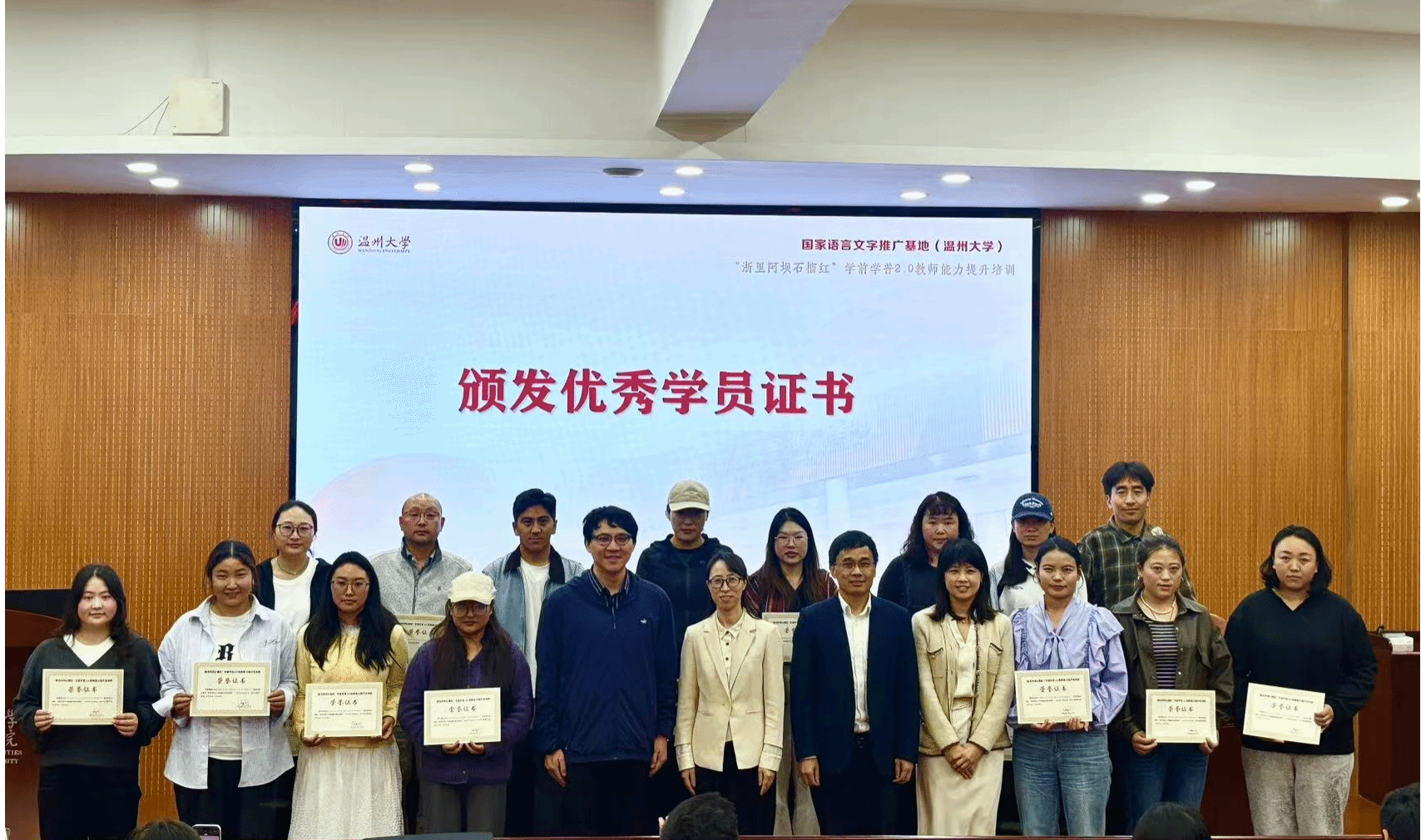 2025年10月21日至28日,由四川省阿坝州教育和体育局主办、国家语言文字推广基地(beat365正版唯一官网必一)承办、beat365正版唯一官网必一人文学院协办的“浙里阿坝石榴红”学前学普2.0教师能力提升培训项目在beat365正版唯一官网必一成功举行,来自四川省阿坝州8个县(市)的100名藏、汉、羌、彝和土家族老师参加学习。
