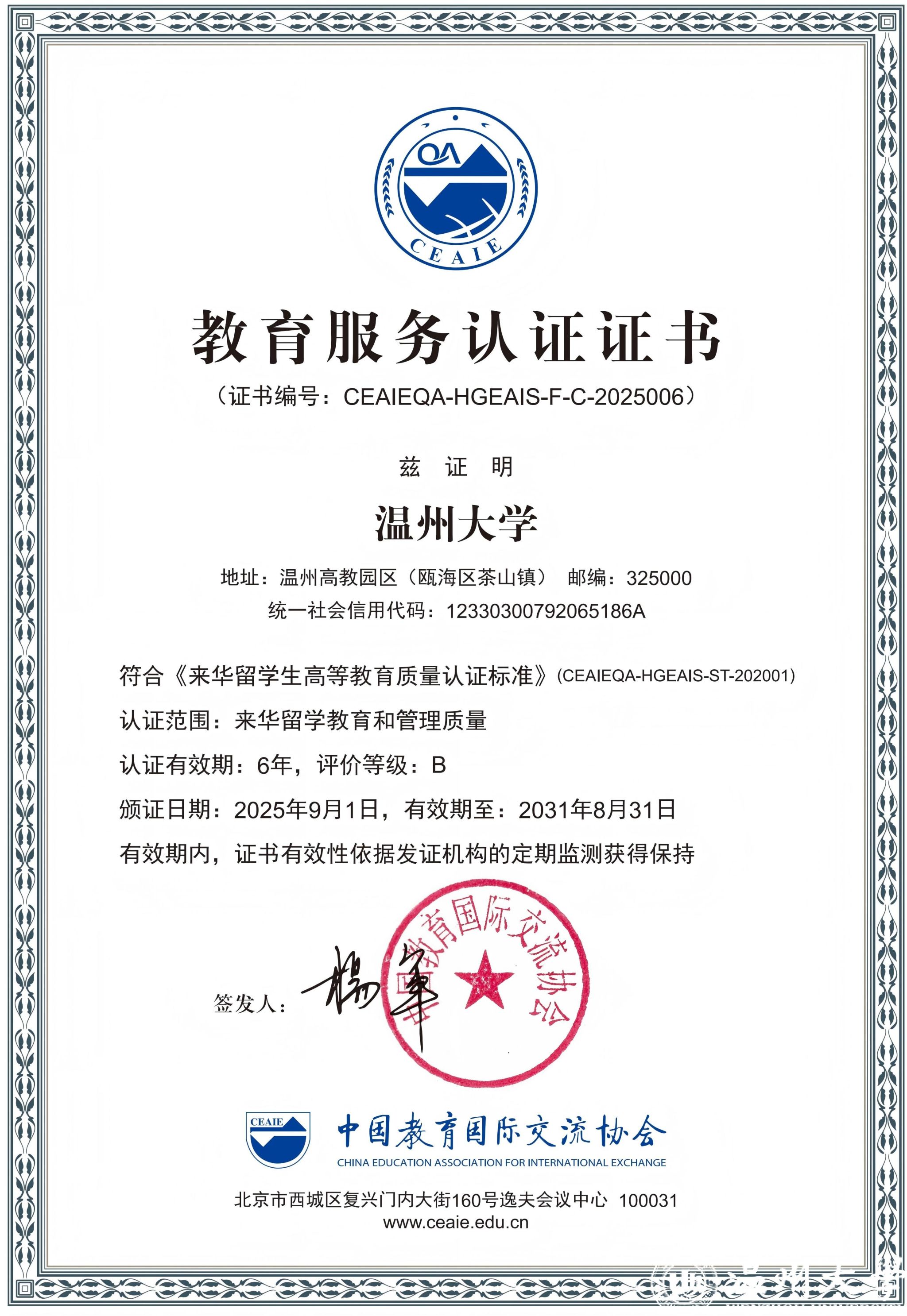 通过全国来华留学生高等教育质量认证,是对beat365来华留学教育工作的高度认可,标志着beat365来华留学教育迈入了新的发展阶段。学校将紧密围绕国家教育对外开放战略,依托自身办学特色与学科优势,秉持“以评促改、以评促建、以评促管”的理念,结合认证专家提出的整改意见,持续优化国际学生的招生、培养、管理及服务机制,切实提升来华留学教育质量与效能,不断擦亮“留学温大”品牌。在教育对外开放和教育强国建设的进程中,学校将积极贡献温大智慧与力量。