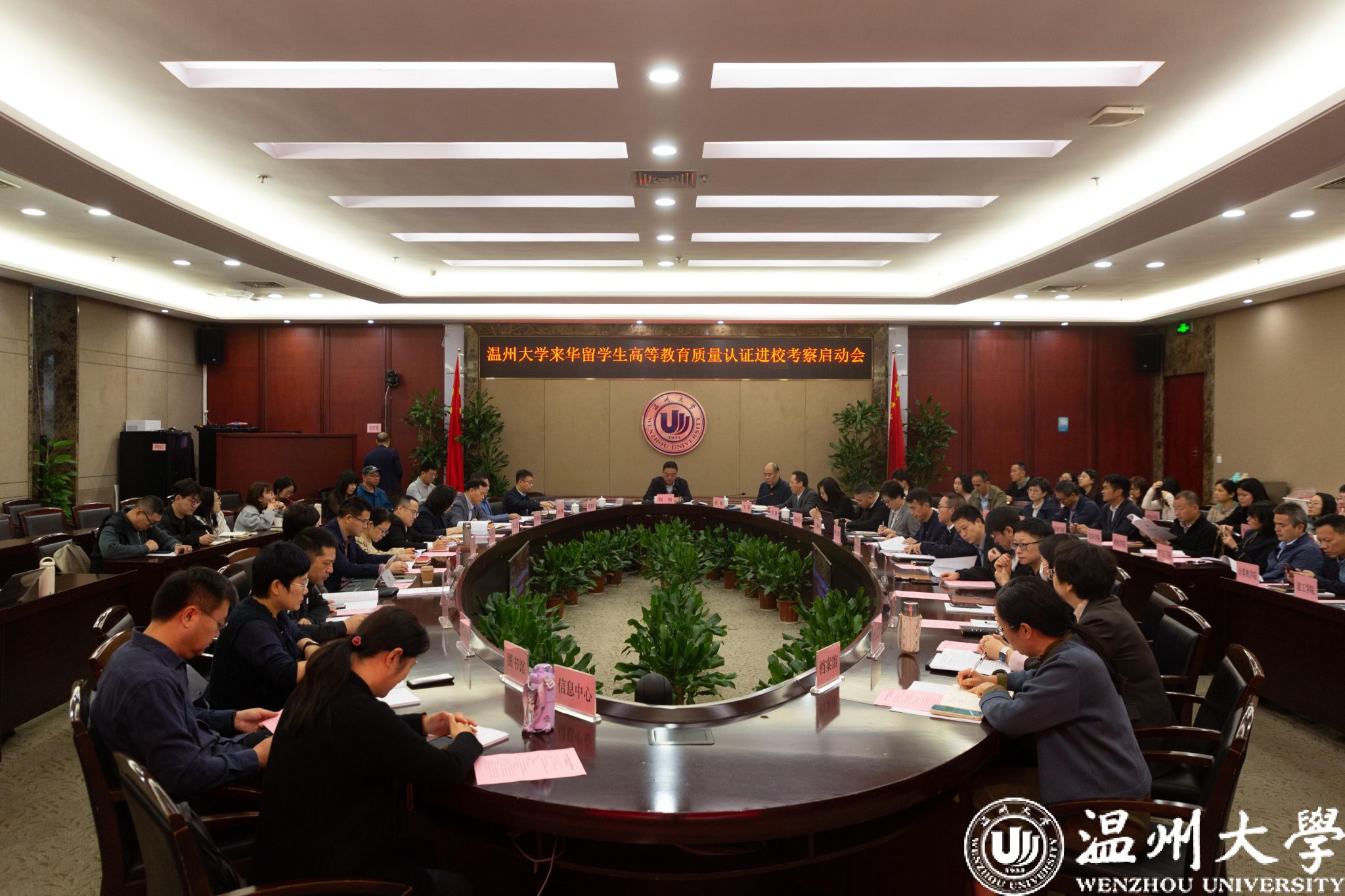 4月27日上午,beat365正版唯一官网必一来华留学生高等教育质量认证进校考察启动会在南校区岩松堂白鹿厅举行。校党委书记钱强出席会议并讲话,浙江省教育厅国际处一级调研员杜健到会指导,特邀专家,各职能部门、相关学院负责人等参加会议。会议由王舜主持。