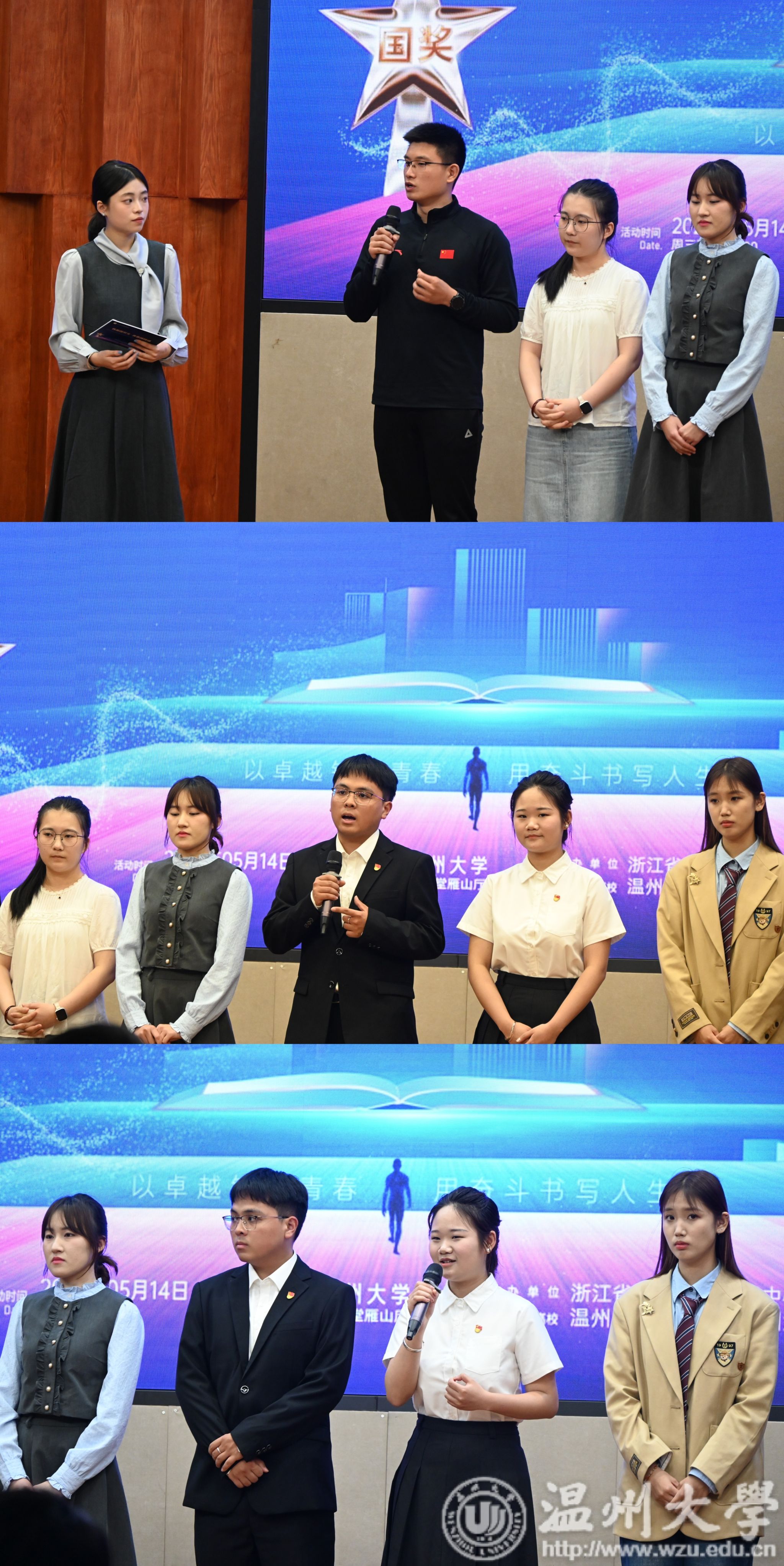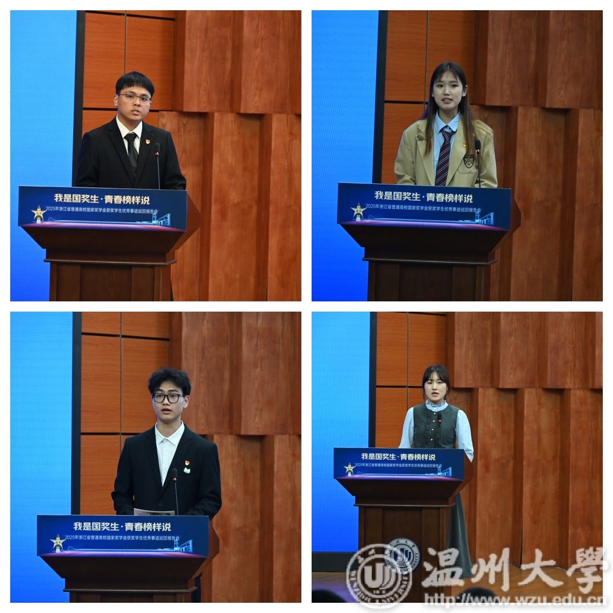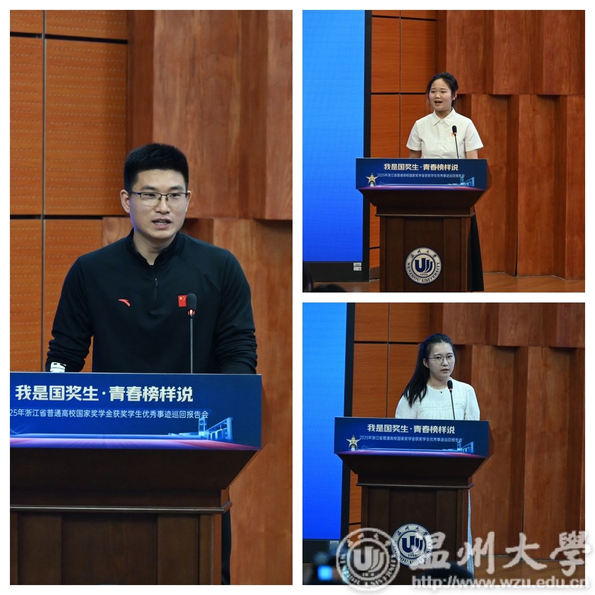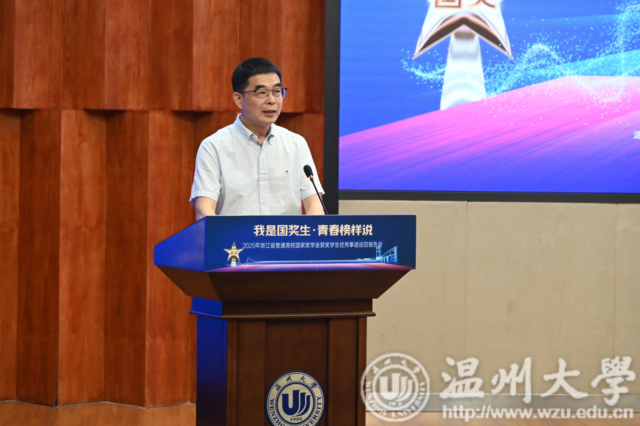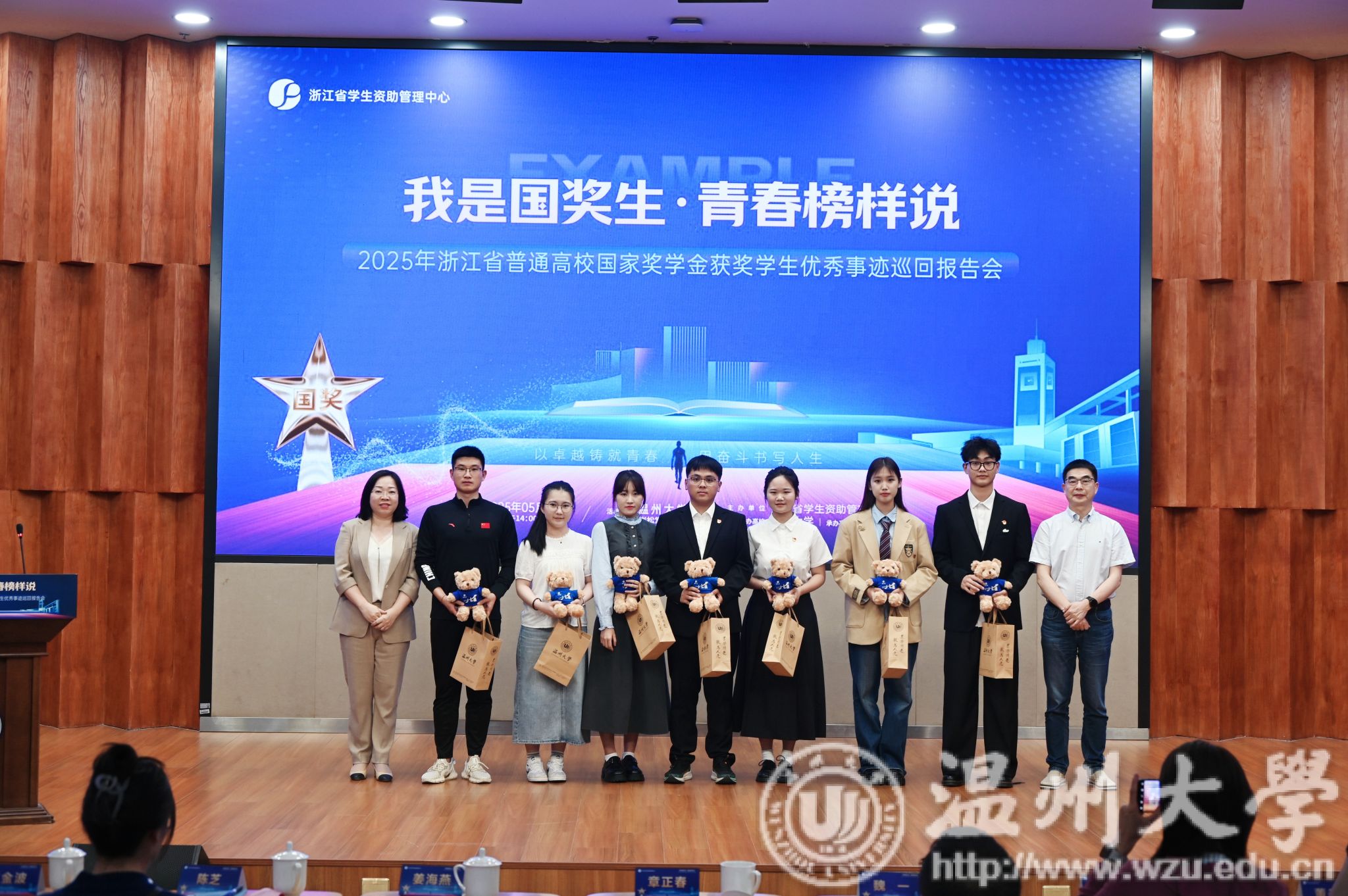 5月14日下午,由浙江省学生资助管理中心主办,beat365正版唯一官网必一承办的“我是国奖生・青春榜样说”2025年浙江省国家奖学金获奖学生优秀事迹巡回报告会在beat365举行。浙江省学生资助管理中心党委委员、副主任章正春与衢州学院、温州医科大学、湖州学院、绍兴文理学院元培学院、温州理工学院、杭州医学院等7所高校的报告团成员、师生代表共同见证7位国奖生的青春答卷。
