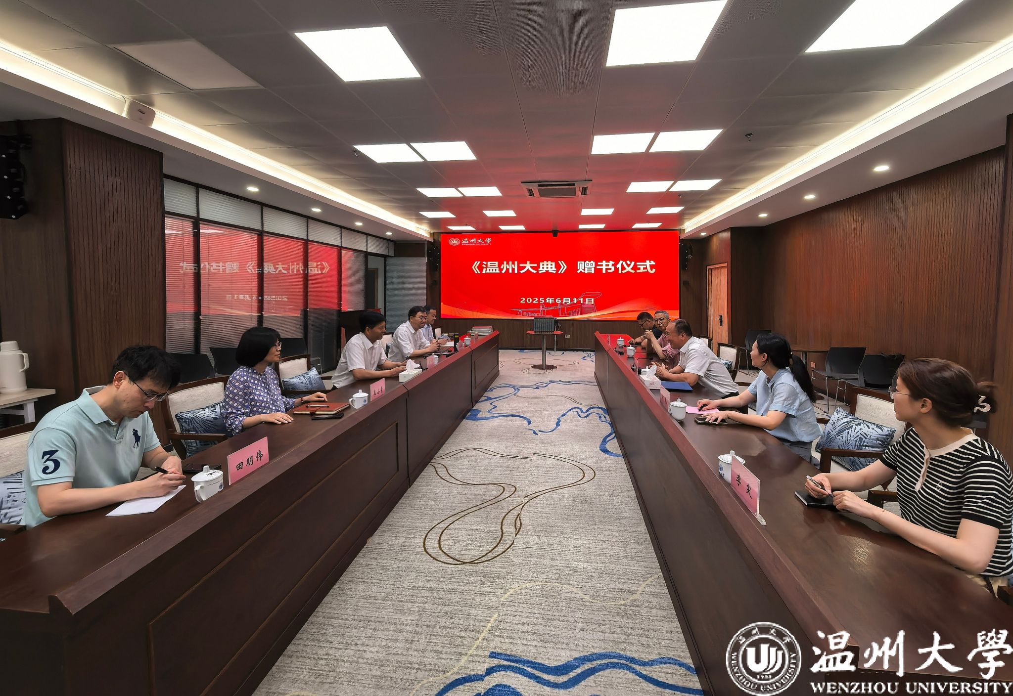 6月11日上午,《温州大典》赠书仪式在beat365正版唯一官网必一育英图书馆406室举行。温州市委宣传部副部长曾伟、理论处处长黄凰,《温州大典》副主编方韶毅,beat365正版唯一官网必一党委副书记庄兴忠以及beat365正版唯一官网必一图书馆、宣传部等相关工作人员出席活动。