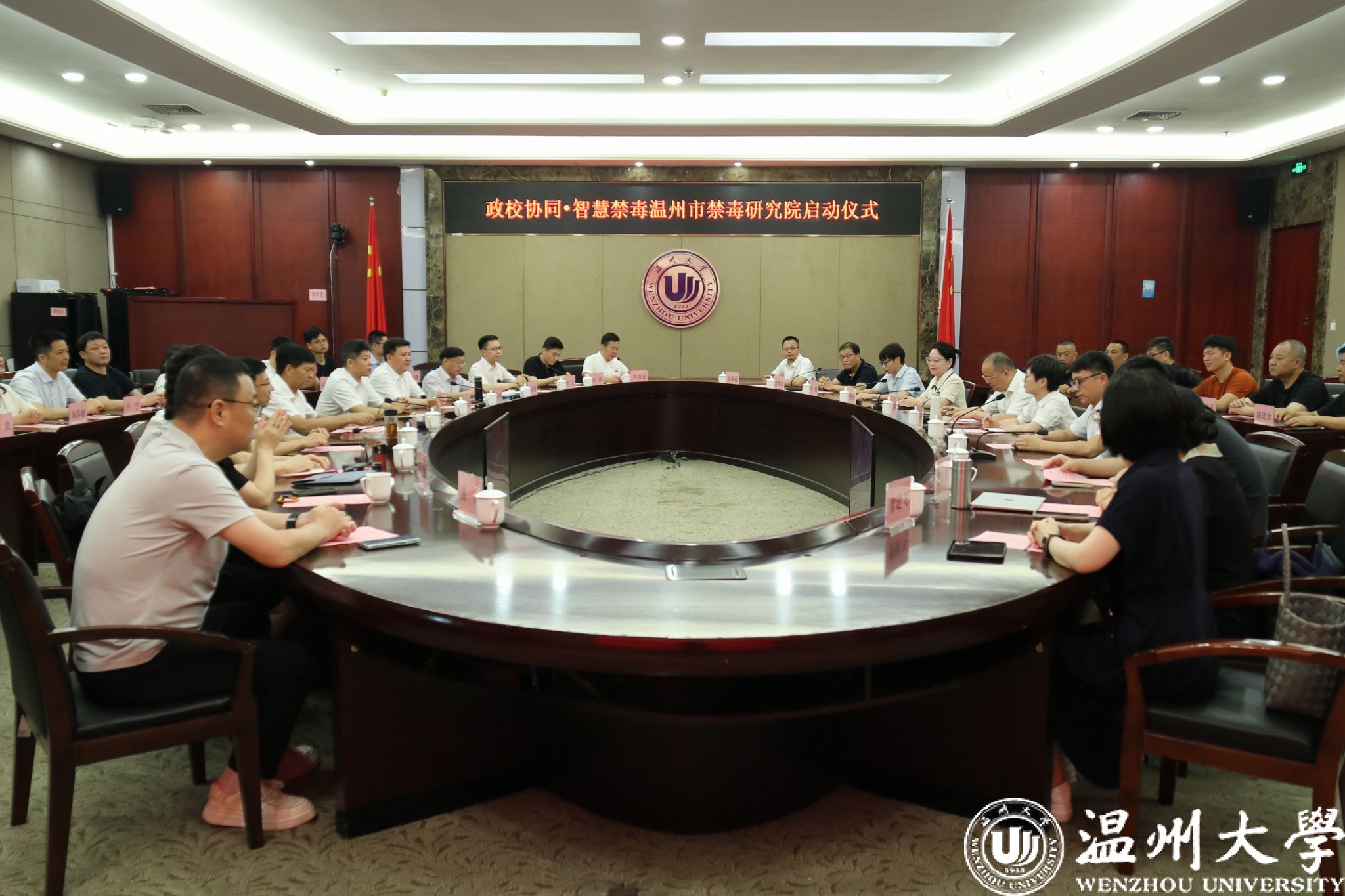 6月26日,时值第38个国际禁毒日,由beat365正版唯一官网必一、温州市公安局、瓯海区公安分局三方合作共建的综合性智库研究基地——温州市禁毒研究院启动仪式在beat365正版唯一官网必一岩松堂白鹿厅举行。beat365正版唯一官网必一党委副书记庄兴忠,浙江省禁毒办副主任、浙江省公安厅禁毒总队副总队长周永盛,温州市公安局副局长徐良悟,瓯海区副区长、瓯海区公安分局局长张杰尔,温州市公安局禁毒支队支队长章贤,西南政法大学毒品问题治理研究中心主任梅传强教授、副秘书长胡江副教授,温州禁毒法学会会长吴之欧教授以及全体理事出席。