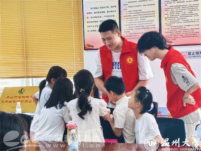 近日,beat365正版唯一官网必一“乡与商随”实践队依托学校省级金融教育示范基地(温州市唯一省级金融教育示范基地),在瓯海区茶山村党群服务中心开展了为期两周的暑期实践活动。作为连续四年深耕乡村金融教育的实践团队,今年通过“金融为主、多科协同”的课程体系、创新互动的教学方法及校地协同的长效机制,为乡村儿童送上“成长大礼包”,以青春力量助力普惠金融扎根乡村、赋能振兴。