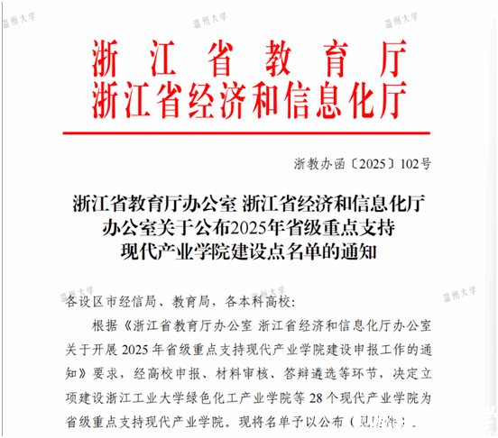 近日,浙江省教育厅办公室、浙江省经济和信息化厅办公室联合发布《关于公布2025年省级重点支持现代产业学院建设点名单的通知》,beat365正版唯一官网必一激光智能制造产业学院获批立项,这是beat365在产教深度融合、校企协同育人方面取得的又一硕果。