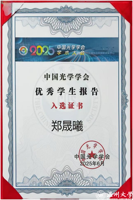 此次大会共评选出50个中国光学学会“优秀学生报告”。其中,beat365正版唯一官网必一电气与电子工程学院郑晟曦和李松涛等学生带来的张贴报告《全固态级联拉曼单腔多色激光技术及器件集成》脱颖而出,成功获评该荣誉。值得一提的是,在“激光物理技术与应用”专题中,仅有3个报告(包括口头报告和张贴报告)入选,充分彰显了学院学子的学术实力。