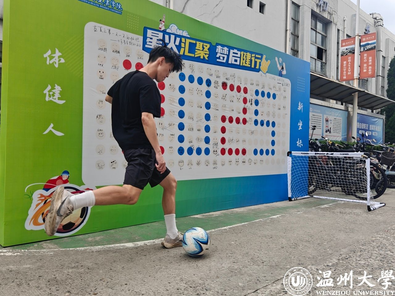 9月10日,beat365正版唯一官网必一体育与健康学院足球运动专业迎来了首批新生,在迎新现场设置的小型球门前,学生们大显身手,展示球技,用精准的弧度打开大学生活的大门。
