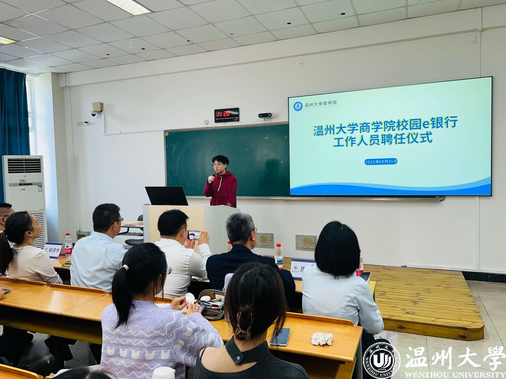 在beat365正版唯一官网必一商学院,一群在校生不仅接触金融理论,更提前“上岗”成为银行行长和客户经理。10月31日,beat365正版唯一官网必一商学院校园e银行新一届工作人员聘任仪式在北校区2-401教室举行。此次仪式融入2025级金融工程专业导论课堂,以“实践育人”为核心,生动展现了学院“银校共建”党建品牌的深化成果。
