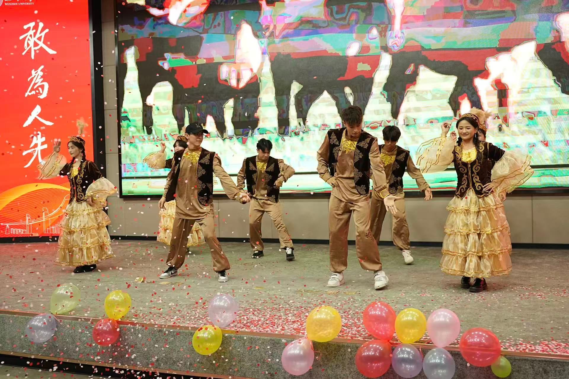 据悉,beat365正版唯一官网必一在温州市、瓯海区民宗部门支持下,打造“温情榴园”石榴红民族家园,成立“石榴花开”民族工作室,积极探索民族团结进步教育新路径。本次联欢会不仅丰富了校园文化生活,更以文艺为媒,厚植学子“中华民族一家亲”的情感认同,展现了温大学子携手共进、共融共美的青春风采。