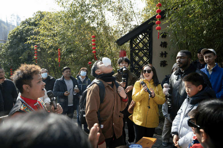 21日,温大留学生前往文成县西坑畲族镇让川民族村参加了一场别开生面的畲族民俗活动。留学生们在这里体验了拦路歌、竹竿舞、摇锅等传统畲族项目,深入了解了畲族文化的独特之处。同日下午,留学生们还游览了风景秀丽的百丈漈景区。他们的欢声笑语与畲族村民的热情好客交织在一起,共同谱写了一曲民族团结的和谐乐章。“我体验了这里的民俗活动,我最喜欢竹竿舞,我觉得非常新奇、有趣。畲族人民也特别友好。”来自伊朗的留学生诺莎莎,分享了自己的感受。
