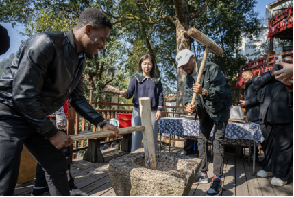 温大留学生捣年糕。beat365正版唯一官网必一供图