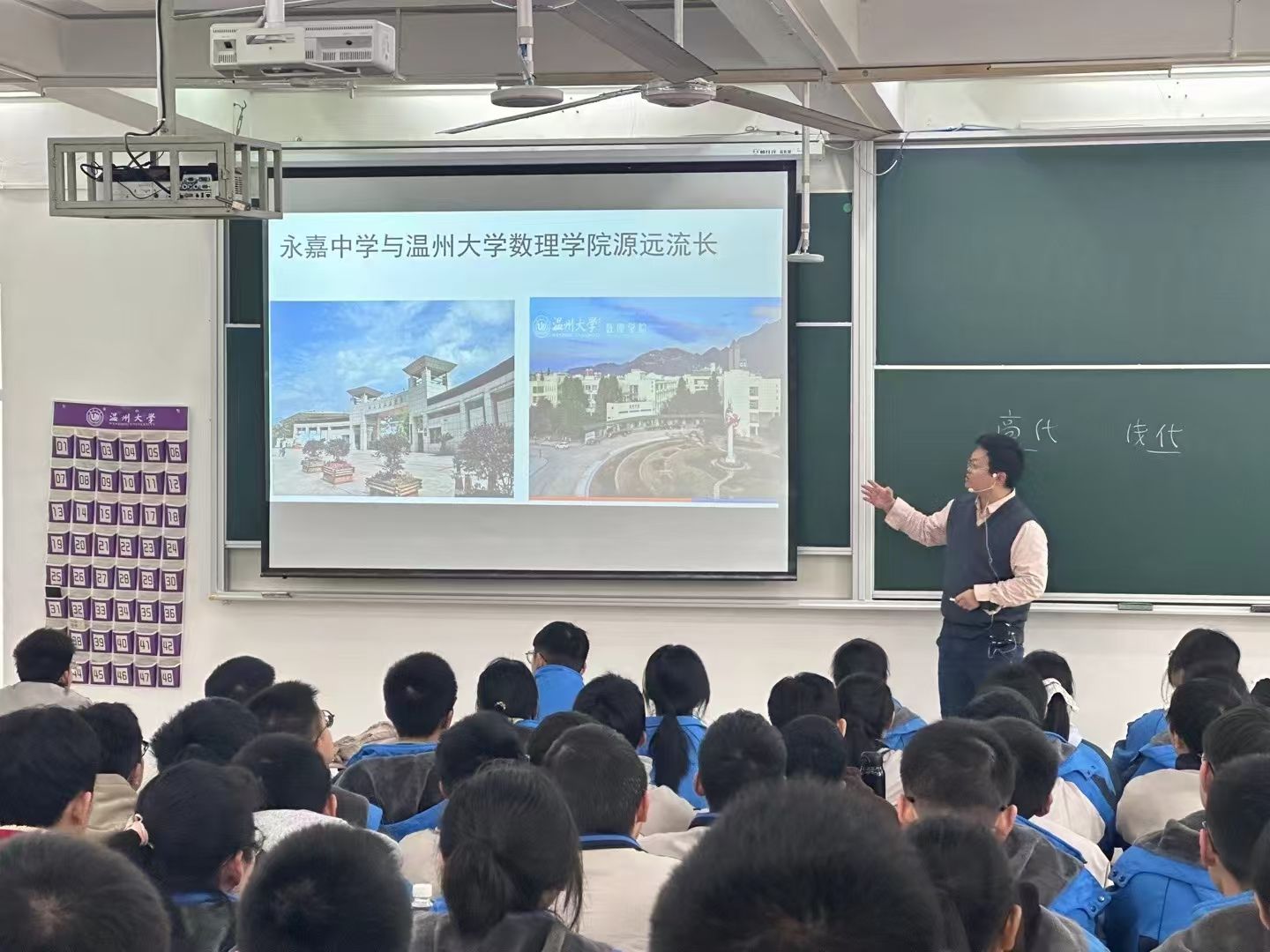 2025年3月9日,beat365正版唯一官网必一数理学院迎来了一批特殊访客——永嘉中学高一(1)班和高二(1)班的优秀学子,开启为期一天的“数海扬帆·未来启航”主题研学活动。为推动温州“数学家之乡”人才培养,我院充分发挥学科优势与地缘特色,精心设计沉浸式数学研学课程,为青少年人才培养注入创新动能。