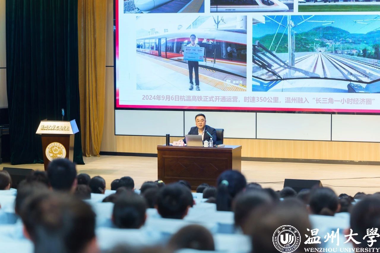 “中国特色社会主义进入新时代以来,我们的生活日新月异,科技事业取得了举世瞩目的成就,这些成就不仅为国家发展注入了新动力,也为温州等地方的发展提供了有力支撑。”从改革开放前资源匮乏、交通闭塞的海港小城,到今日随处可见宜业、宜居、宜人的新变化和新风景,温州人以敢为人先、勇于探索的精神,创造了无数个“全国第一”。钱强告诉学生们,从温州到全国,新时代的伟大变革在党史、新中国史、改革开放史、社会主义发展史上具有里程碑意义。