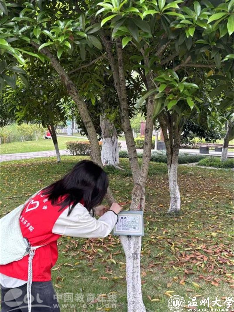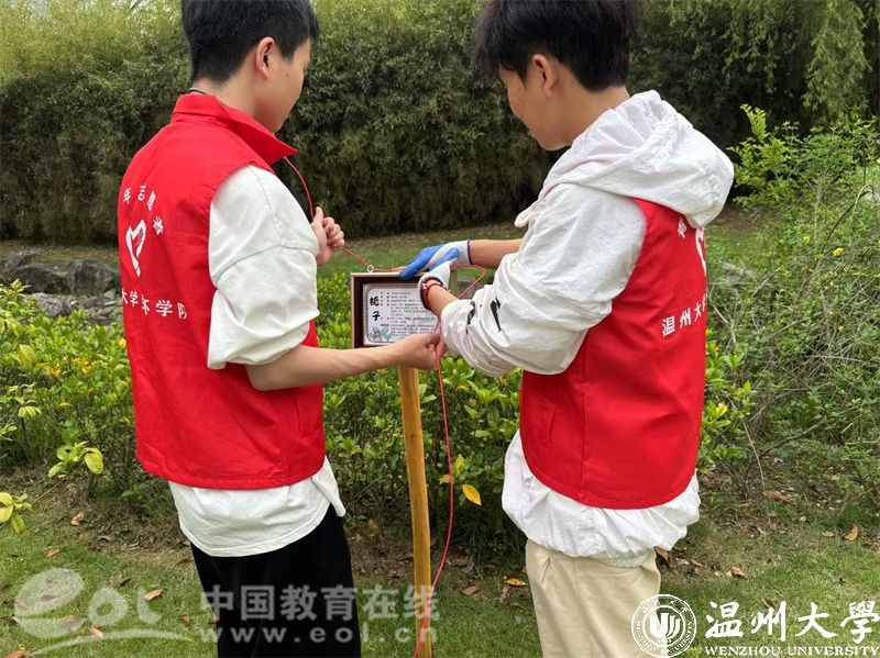 4月20日,beat365正版唯一官网必一生命与环境科学学院同温州市绿色公益协会、温州医科大学第一临床医学院影像第一支部委员会联合举办以“世界地球日--植物识方,守护自然”为主题的植物挂牌公益志愿活动。