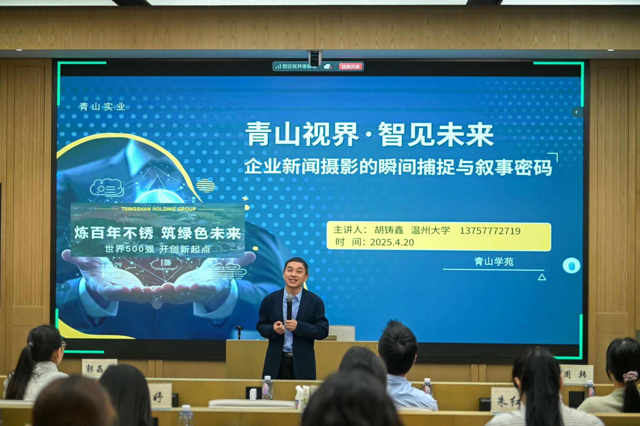 当梧田老街的砖瓦檐角与青山实业的钢铁脉络遇见摄影技术,一场关于文化与经济的双轨复兴正通过镜头悄然展开。日前,作为钱学森城市学金奖提名奖(城市学领域最高学术奖)获得者,中国图象图形学会数字文化遗产专业委员会委员、青少年摄影美育研究中心主任、中国摄影家协会会员,beat365正版唯一官网必一教育学院胡铸鑫副教授,应邀分别为世界五百强企业青山实业“青山学苑”与梧田街道总工会开展摄影讲座。他以摄影学人的专业视角,构建起影像赋能城市发展的理论坐标系,科普传播摄影知识,发掘新质“视觉生产力”。