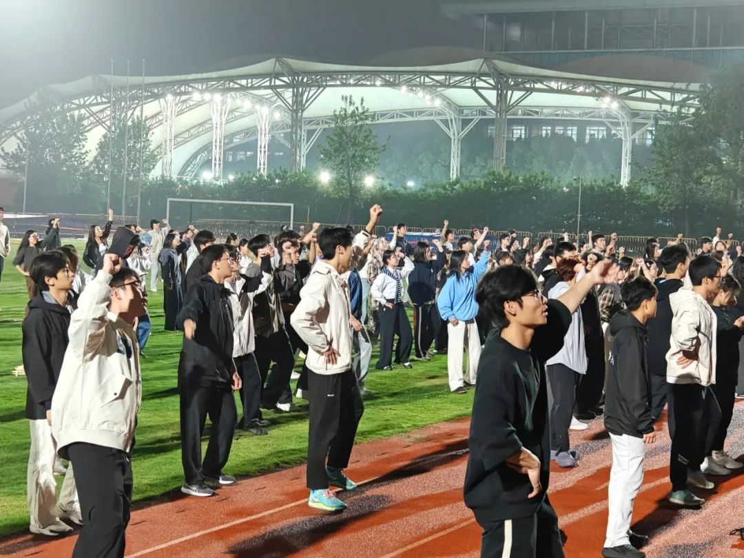 共舞环节正式开始,来自体育与健康学院的李炎和方仕玮两位老师带领全场师生进行热身。之后,随着《我们都是追梦人》《超级英雄》《逆战》等青春阳光且富有节奏感的音乐响起,田径场这个巨大的舞池很快活跃起来。夜幕下,老师们纷纷步入舞池,与同学们并肩起舞。缤纷的灯光交织闪烁,动感的音乐响彻田径场,大家踏着节拍律动,步伐轻盈灵动,笑容灿烂飞扬。在激昂旋律中,温大学子随节拍舒展身姿,以灵动舞步诠释青春张力。舞动间释放压力,于跃动中邂逅愉悦,用蓬勃朝气勾勒校园活力图景。