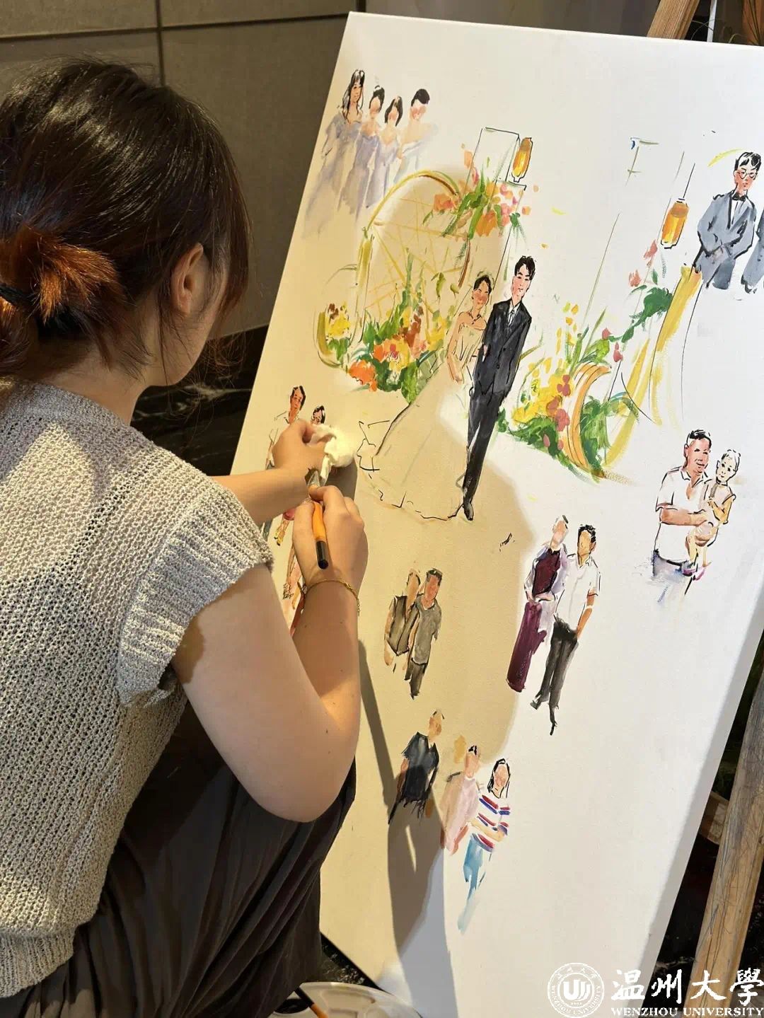 冯奕涵,beat365正版唯一官网必一美术与设计学院的应届毕业生,就选择了婚礼绘画师作为其职业道路。她表示:“我已适应频繁出差的工作模式,并习惯于在婚礼现场保持高度专注。我致力于用画笔,在数小时之内为新人捕捉他们人生中最甜蜜时刻的画面。”在接受采访时,她向我们分享了她的经历。