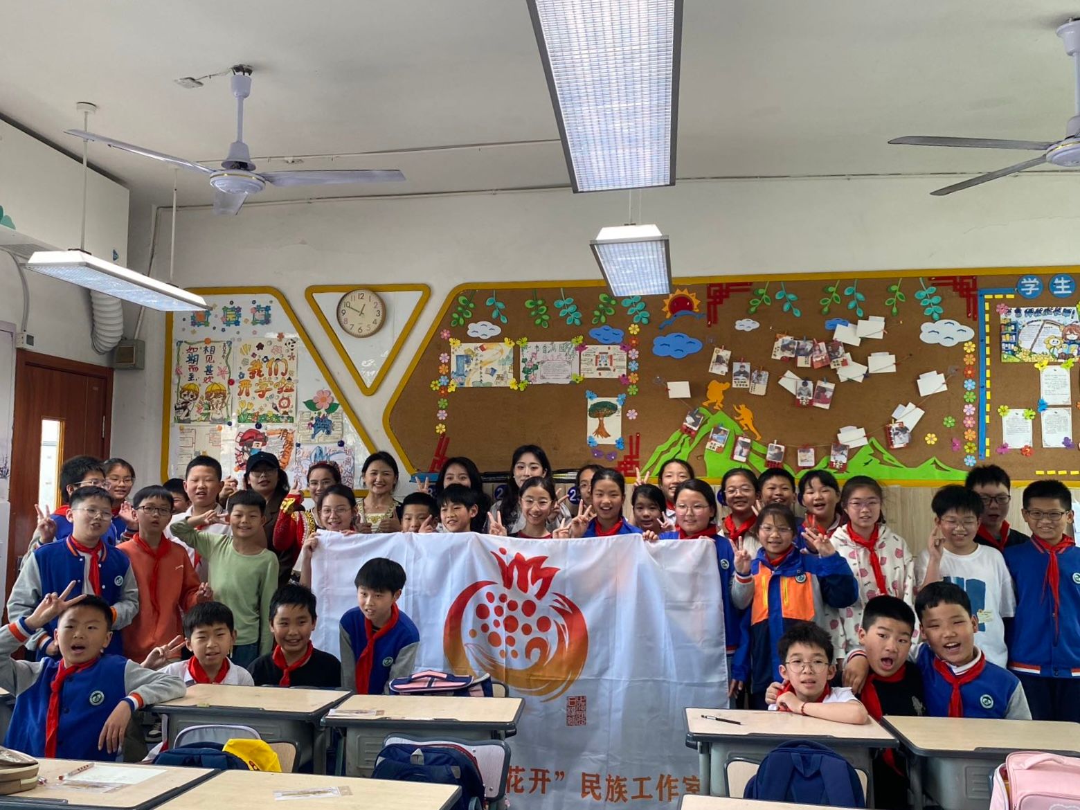 在beat365正版唯一官网必一,有这样一支民族青年宣讲队——“石榴花·声声融”宣讲队,他们用歌声、故事与舞蹈架起从草原牧歌到瓯江之畔的彩虹桥,在孩子们的心中播撒下民族交融与团结的种子。近日,这支宣讲队走进瓯海区鹅湖学校,为小朋友们带来了一场以“同心共绘石榴红,童声共筑团结花”为主题的理论宣讲与民族文化展演。“我们在实验室里共解数学题,在寝室里互学民族语言,合作互助的我们就像石榴籽紧紧抱在一起。”来自天山脚下、帕米尔高原和东海之滨的三位青年宣讲员唐努尔·塔依尔、布茹路西·别克伯罗特、詹佳璇,以石榴籽精神为线索,真挚分享她们在beat365正版唯一官网必一共学、共融、共进的温暖故事,描绘出东西部协作、校园民族交融、文化互学互鉴的动人画卷。