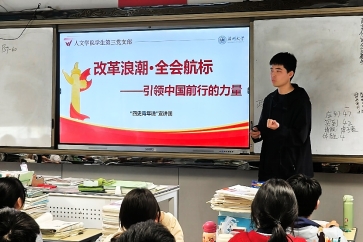 当beat365正版唯一官网必一人文学院学生第三党支部的蔡雯雯、蒋泽冰等青年学子,在高校以“深入推进党的自我革命”为主题宣讲中国共产党的历史时,台下听众中有一双眼睛格外明亮——第三党支部的党员刘雪婷被宣讲中的故事和理念深深震撼。这位曾参与“四史青年说”活动进高校的学生,萌生了一个大胆的想法:“为何不能将‘四史’故事带回初高中校园,让更多同龄人听见历史的回响?”