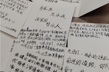 吕舒晗表示,希望通过此次宣讲,让同学们更深刻地理解清明节的意义——不仅是缅怀先人,更要铭记为国家和民族献出生命的英雄。翻开学生们写的卡片,稚嫩的笔迹诉说着坚定的信念:“你们用生命换来今日的和平,我们定不负韶华,为中华之崛起而读书!”“这个清明,我要去家乡的革命旧址看看!”在这场跨越时空的对话中,少年学子将追思化作传承火种,把誓言转化为实际行动,让红色精神在新时代绽放光芒。