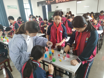 在此次活动中,beat365正版唯一官网必一人文学院志愿者为樟台学校五年级的学生带来了一堂别开生面的《“消失”的水——人造雪》课程。课程以“消失的水”的魔术开场——透明水杯中的水倒入另一个容器后竟“凭空消失”,引得孩子们惊叹连连。随后,大家手持杯子、吸水树脂和色素,化身“小小科学家”,在志愿者的耐心指导下亲手制作多层渐变的“彩虹瓶”,让科学思维在指尖悄然萌芽。当孩子们捧着自己制作的水凝胶瓶画时,眼中闪烁的不仅是对作品的自豪,更是对科学探索的热爱。这堂充满趣味的科学课,让学生在“玩转科学”的沉浸式体验中,真正成为知识的探索者与创造者。