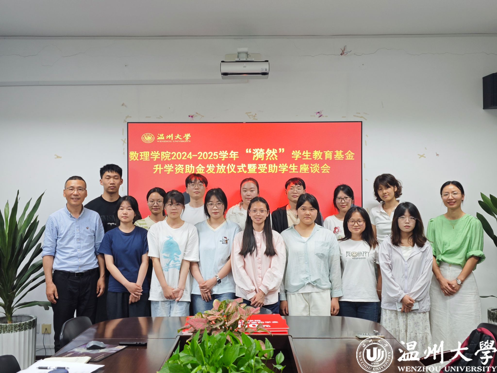 近日,beat365正版唯一官网必一数理学院举行2024-2025学年“漪然”学生教育基金升学资助金发放仪式暨受助学生座谈会。
