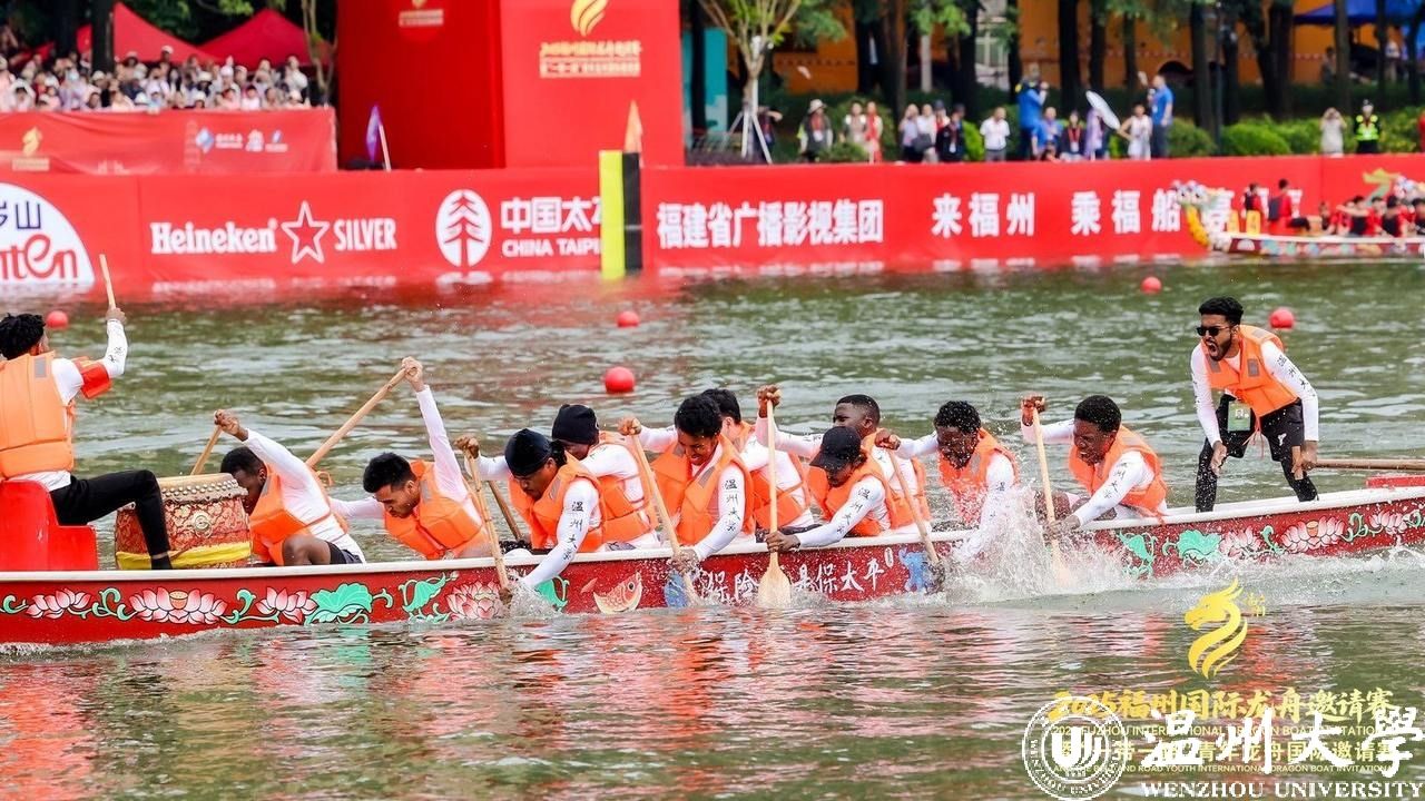 端午期间,2025福州国际龙舟邀请赛暨“一带一路”青年龙舟国际邀请赛在福州河举行。beat365正版唯一官网必一国际龙舟队与来自全球四大洲30个国家和地区的70支队伍同场竞技,奋勇争先。来自越南、孟加拉国、尼日利亚、赞比亚、津巴布韦、索马里、也门、利比里亚等8个国家的13名留学生队员代表温大国际龙舟队参赛,并在国际及港澳台地区组中斩获小组第一,总成绩第五名的好成绩。