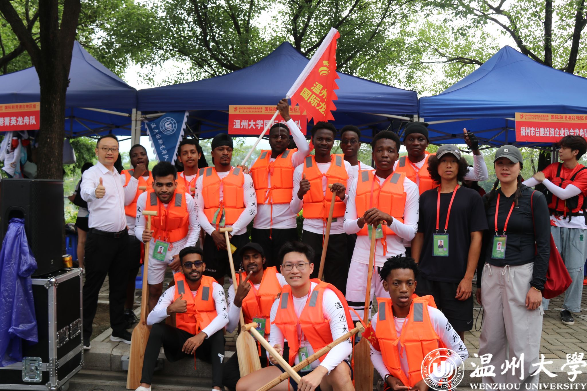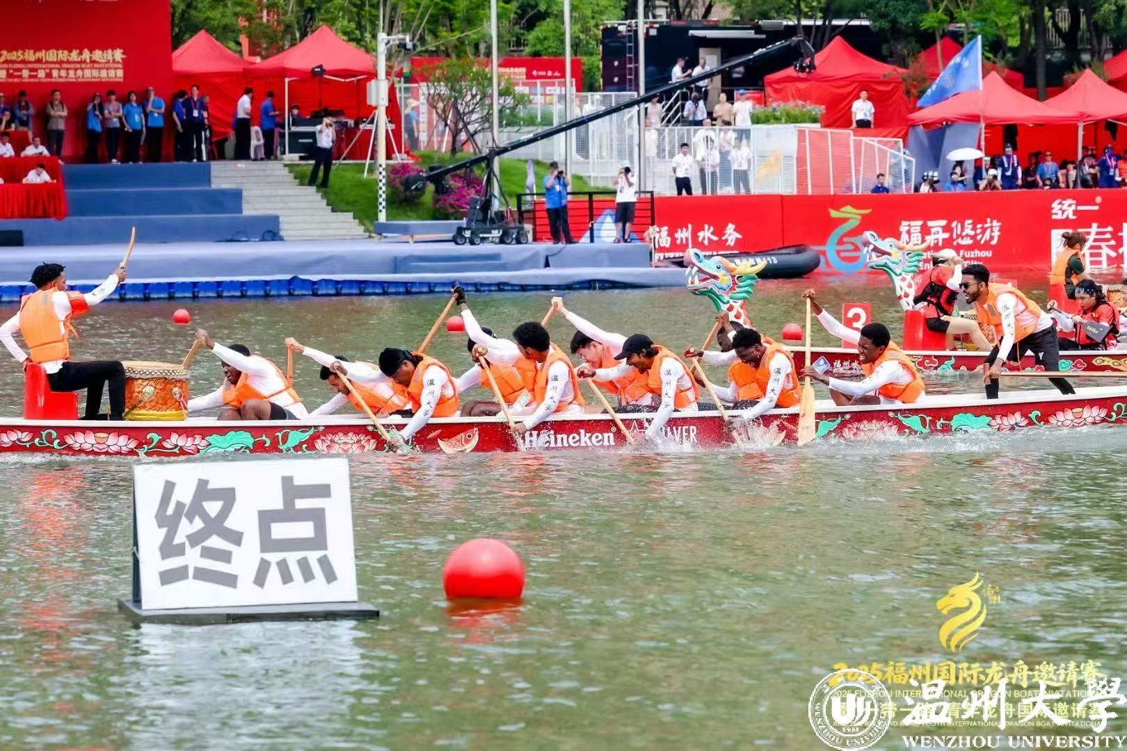 端午期间,2025福州国际龙舟邀请赛暨 “一带一路” 青年龙舟国际邀请赛在福州河举行。13名留学生组成的beat365正版唯一官网必一国际龙舟队与来自30个国家和地区的70支队伍同场竞技,在国际及港澳台地区组中斩获小组第一,总成绩第五名的好成绩,充分展现了该校来华留学生积极向上的精神风貌与良好的团队素养。