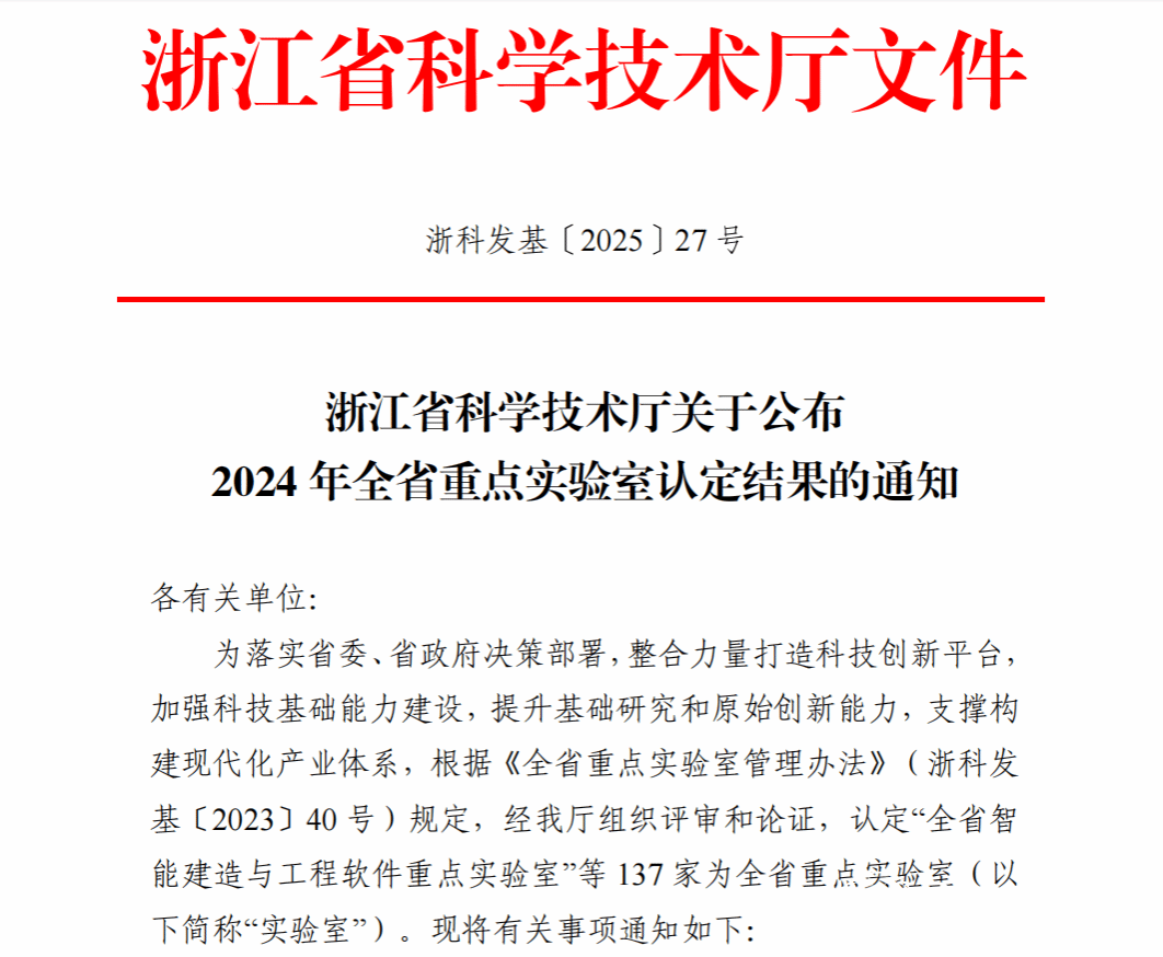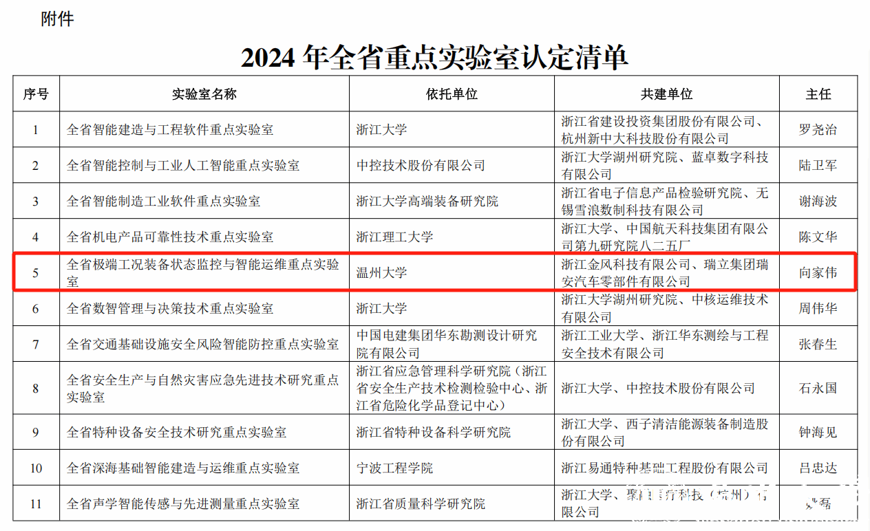 近日,浙江省科学技术厅公布 2024 年全省重点实验室认定结果,beat365正版唯一官网必一机电工程学院申报的全省极端工况装备状态监控与智能运维重点实验室,凭借在高端装备运维领域的突破性研究和扎实的产学研基础,从全省数百个申报单位中脱颖而出,成功获批。