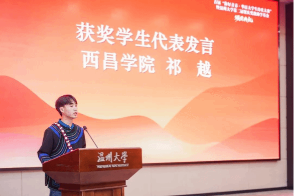 来自四川西昌学院的彝族大学生祁越代表获奖作者发言。他说:“我生长在一个名为乌托尔库的地方,那里基本上都是彝族同胞。我的写作立足于四川大凉山,对彝族传统文化、习俗、谚语、神话、毕摩文化等进行文学铜矿再冶炼、再创造。通过写作,让那些已经不在人间的人能够永远地活着……在文学记忆中永远地活下去。