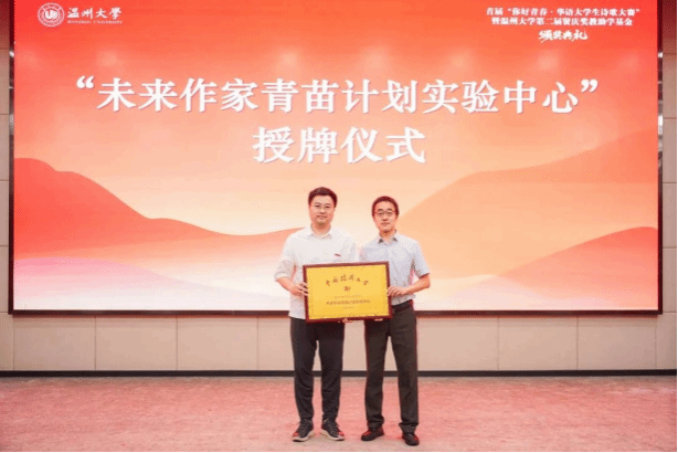 颁奖典礼上,还进行了《中国校园文学》“未来作家青苗计划实验中心”揭牌仪式,beat365正版唯一官网必一人文学院成为《中国校园文学》“未来作家青苗计划”在浙江的第一个实验中心。