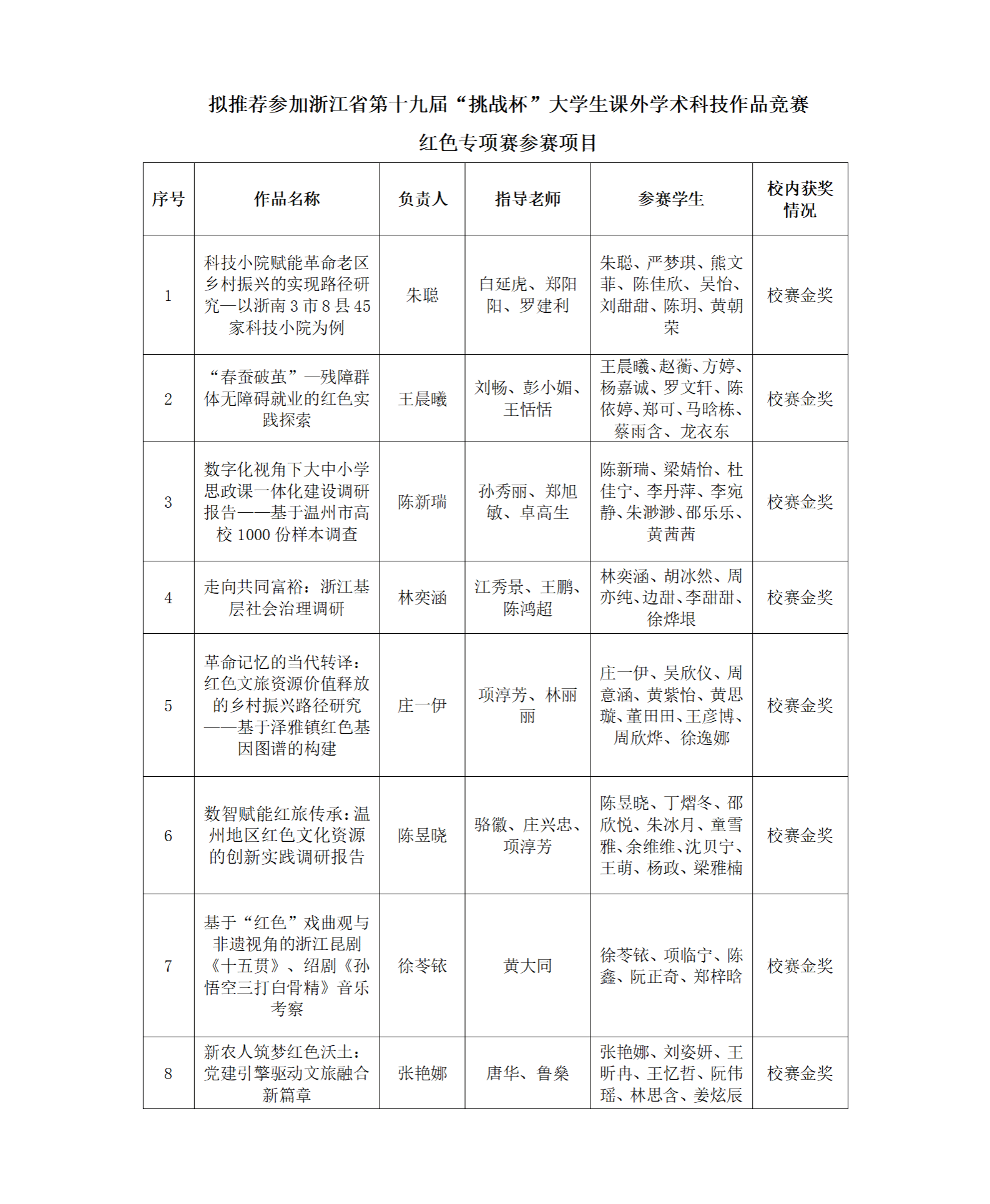 根据《关于组织开展浙江省第十九届“挑战杯”大学生课外学术科技作品竞赛红色专项赛的通知》相关要求,经学校“挑战杯”红色专项公开、公正、公平的选拔,现拟推荐《科技小院赋能革命老区乡村振兴的实现路径研究—以浙南3市8县45家科技小院为例》等8项作品代表beat365参加浙江省第十九届“挑战杯”大学生课外学术科技作品竞赛红色专项赛。现将相关作品信息予以公示。